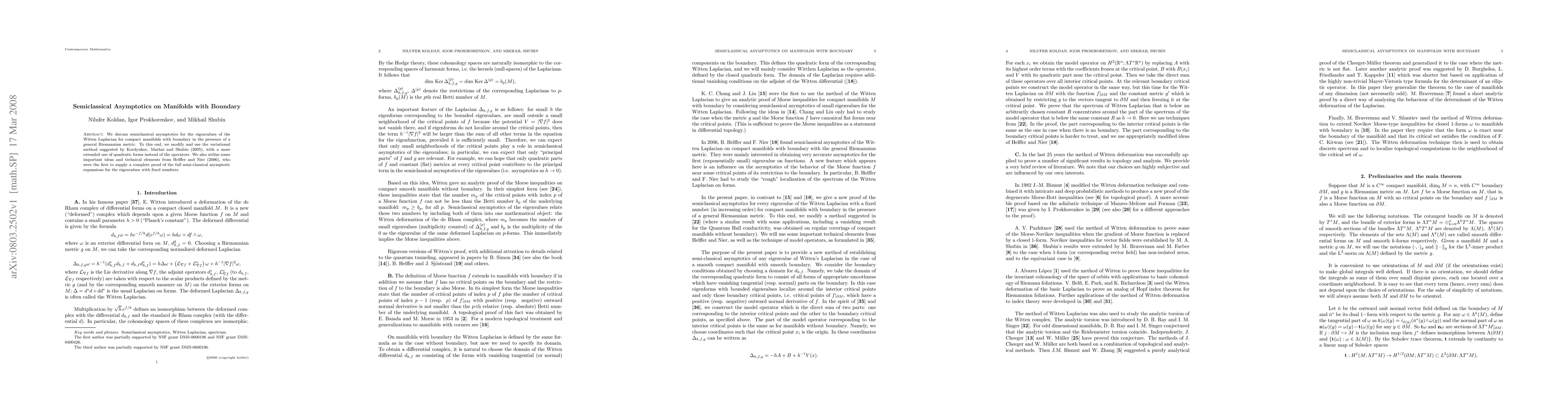 This paper explores semiclassical asymptotics for the eigenvalues of the Witten Laplacian on compact manifolds with boundary under a general Riemannian metric, employing a modified variational method and extending the use of quadratic forms to derive the results. It integrates insights from Helffer and Nier to provide a complete proof of the semi-classical asymptotic expansions.
