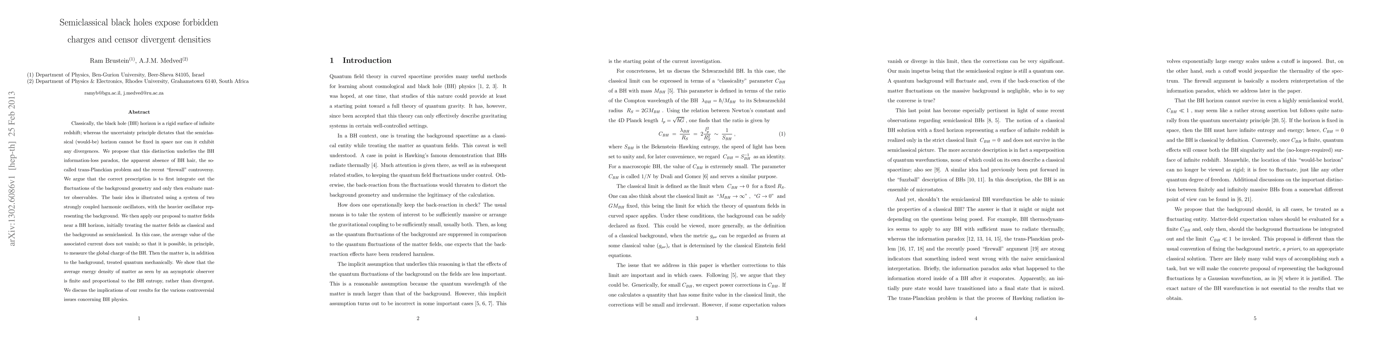Classically, the black hole (BH) horizon is a rigid surface of infinite redshift; whereas the uncertainty principle dictates that the semiclassical (would-be) horizon cannot be fixed in space nor can it exhibit any divergences. We propose that this distinction underlies the BH information-loss paradox, the apparent absence of BH hair, the so-called trans-Planckian problem and the recent "firewall" controversy. We argue that the correct prescription is to first integrate out the fluctuations of the background geometry and only then evaluate matter observables. The basic idea is illustrated using a system of two strongly coupled harmonic oscillators, with the heavier oscillator representing the background. We then apply our proposal to matter fields near a BH horizon, initially treating the matter fields as classical and the background as semiclassical. In this case, the average value of the associated current does not vanish; so that it is possible, in principle, to measure the global charge of the BH. Then the matter is, in addition to the background, treated quantum mechanically. We show that the average energy density of matter as seen by an asymptotic observer is finite and proportional to the BH entropy, rather than divergent. We discuss the implications of our results for the various controversial issues concerning BH physics.