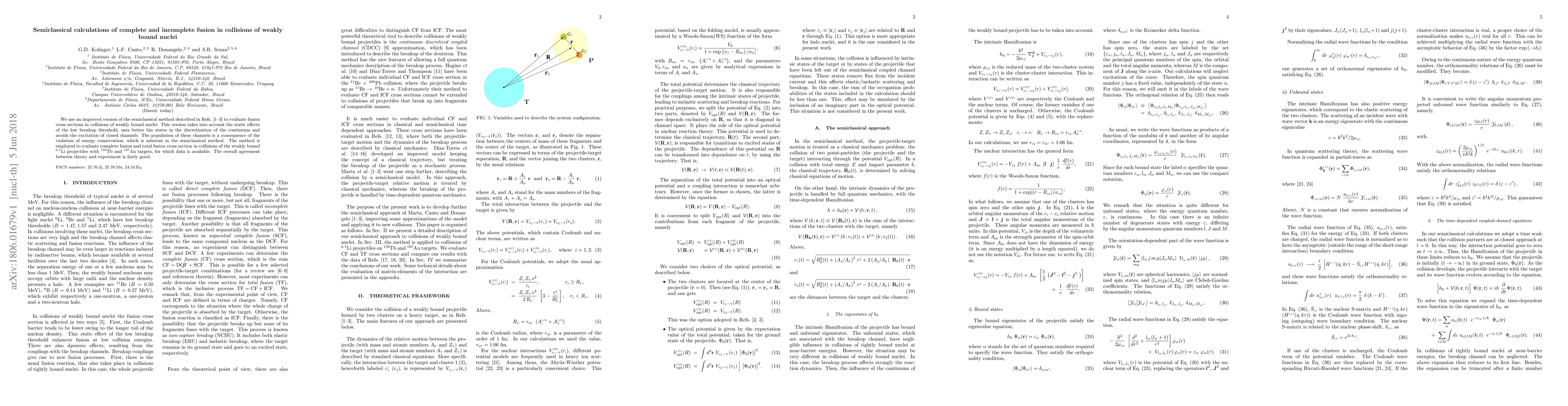 We use an improved version of the semiclassical method described in Refs. [1,2,3] to evaluate fusion cross sections in collisions of weakly bound nuclei. This version takes into account the static effects of the low breakup threshold, uses better bin states in the discretization of the continuum and avoids the excitation of closed channels. The population of these channels is a consequence of the violation of energy conservation, which is inherent in the semiclassical method. The method is employed to evaluate complete fusion and total fusion cross section in collisions of the weakly bound 6,7Li projectiles with 159Tb and 197Au targets, for which data is available. The overall agreement between theory and experiment is fairly good.