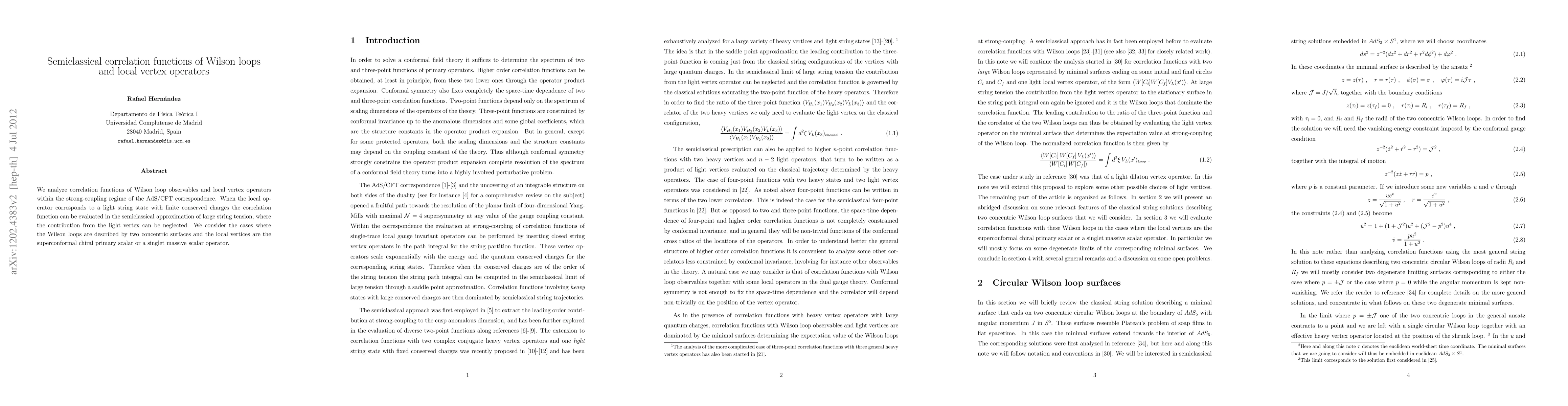 This paper examines correlation functions of Wilson loops and local vertex operators in the strong-coupling regime of AdS/CFT, focusing on the semiclassical approximation for light string states with conserved charges. It analyzes cases where Wilson loops are defined by concentric surfaces and considers both superconformal chiral primary and massive singlet scalar operators.