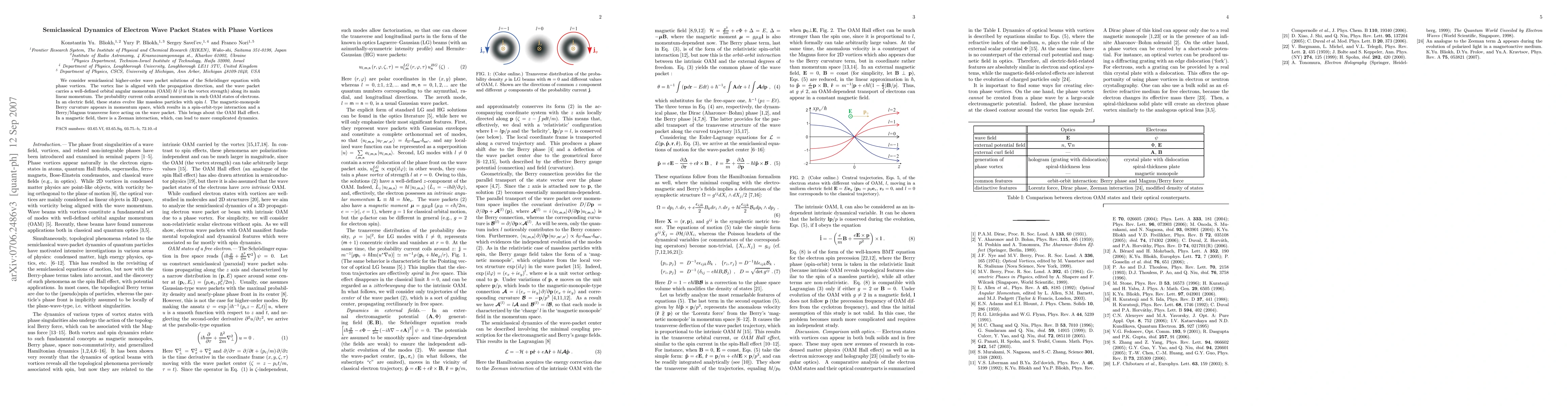 This paper explores semiclassical wave packet solutions of the Schrödinger equation featuring phase vortices aligned with the propagation direction, exhibiting orbital angular momentum. The study reveals a spin-orbit interaction effect and an OAM Hall effect, alongside Zeeman interactions in magnetic fields, influencing the dynamics of these electron states.