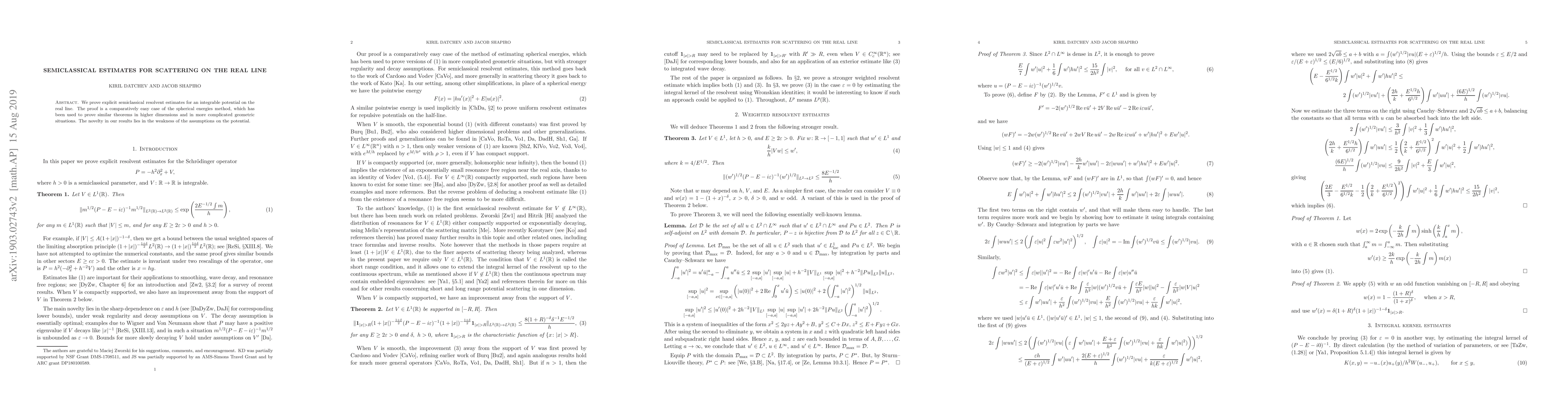 Summary: This paper presents explicit semiclassical resolvent estimates for an integrable potential on the real line using the spherical energies method, with a focus on the minimal assumptions required for the potential. The method is shown to be effective even in comparatively simple settings.