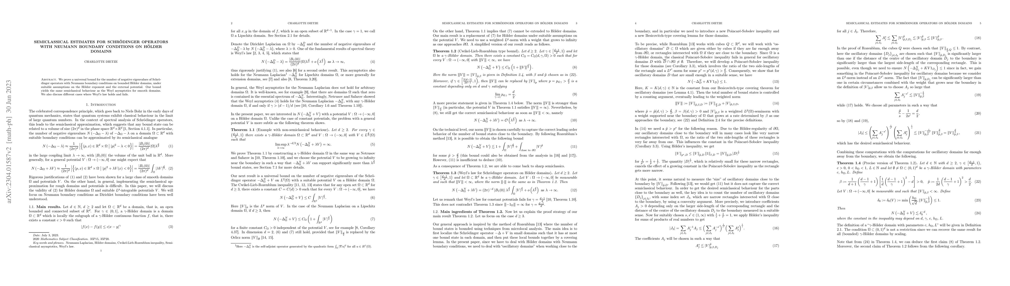 This paper establishes a universal bound for the number of negative eigenvalues of Schrödinger operators with Neumann boundary conditions on bounded Hölder domains, showing semiclassical behavior similar to that on smooth domains. It also examines scenarios where Weyl's law holds and where it fails.