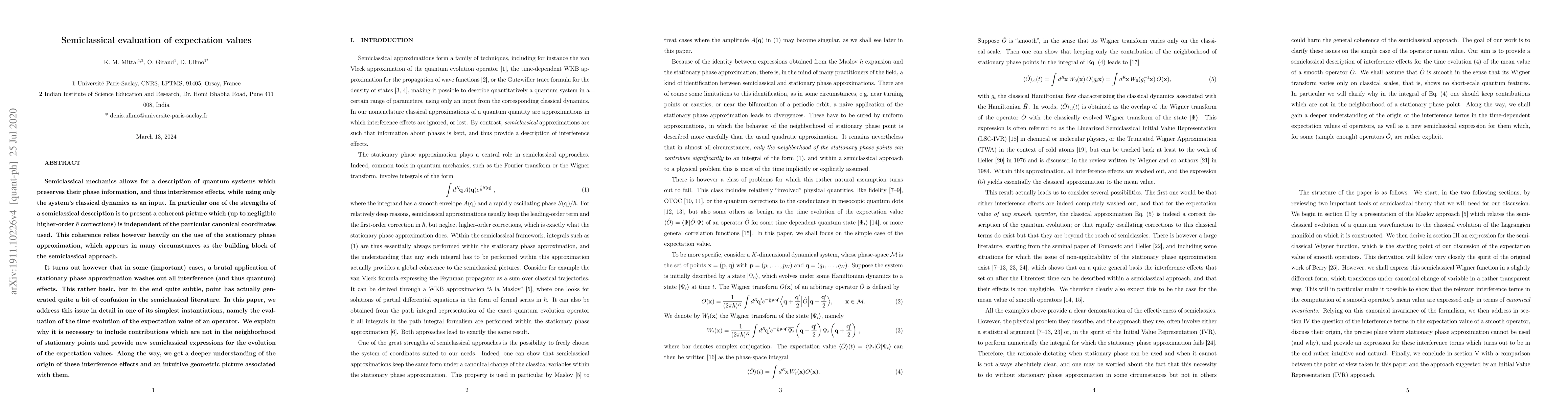 Semiclassical Mechanics allows for a description of quantum systems which preserves their phase information, while using only the system's classical dynamics as an input. Over the time an identification has been developed between stationary phase approximation and semiclassical mechanics. Although it is true that in most of the cases in semiclassical mechanics the significant contributions come from the neighborhood of the stationary points, there are some important exceptions to it. In this paper we address one of these exceptions, occurring in the evaluation of the time evolution of the expectation value of an operator. We explain why it is necessary to include contributions which are not in the neighborhood of stationary points and provide new semiclassical expressions for the evolution of the expectation values. For our analysis we employ and discuss two major semiclassical tools. The first one is the association of the quantum evolution of a wavefunction to the classical evolution of a Lagrangian manifold, as done by Maslov. The second one is the derivation of an expression for the semiclassical Wigner function whose properties under canonical transformation are made explicit. Using the canonical invariance of the formalism, we derive an expression for the expectation value of observables for the one-dimensional case and then generalize it to higher dimensions. We find that the expression can be written as the sum of a classical contribution which corresponds to what is referred to as the Truncated Wigner Approximation (TWA) in the cold-atoms physics context, or the Linearized Semiclassical Initial Value Representation(LSC-IVR) in chemical or molecular physics, and additional terms associated with interferences. Along the way, we get a deeper understanding of the origin of these interference effects and an intuitive geometric picture associated with them.