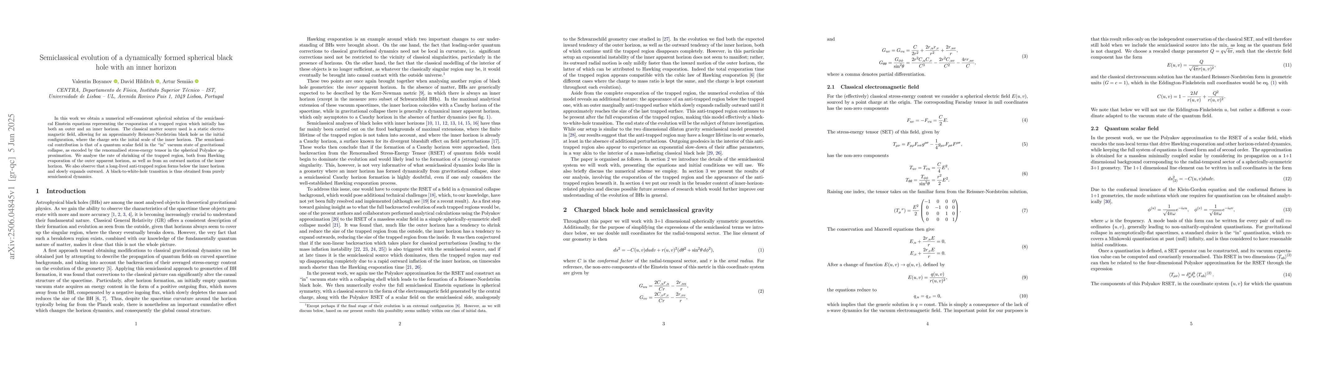 In this work we obtain a numerical self-consistent spherical solution of the semiclassical Einstein equations representing the evaporation of a trapped region which initially has both an outer and an inner horizon. The classical matter source used is a static electromagnetic field, allowing for an approximately Reissner-Nordstr\"om black hole as the initial configuration, where the charge sets the initial scale of the inner horizon. The semiclassical contribution is that of a quantum scalar field in the "in" vacuum state of gravitational collapse, as encoded by the renormalised stress-energy tensor in the spherical Polyakov approximation. We analyse the rate of shrinking of the trapped region, both from Hawking evaporation of the outer apparent horizon, as well as from an outward motion of the inner horizon. We also observe that a long-lived anti-trapped region forms below the inner horizon and slowly expands outward. A black-to-white-hole transition is thus obtained from purely semiclassical dynamics.