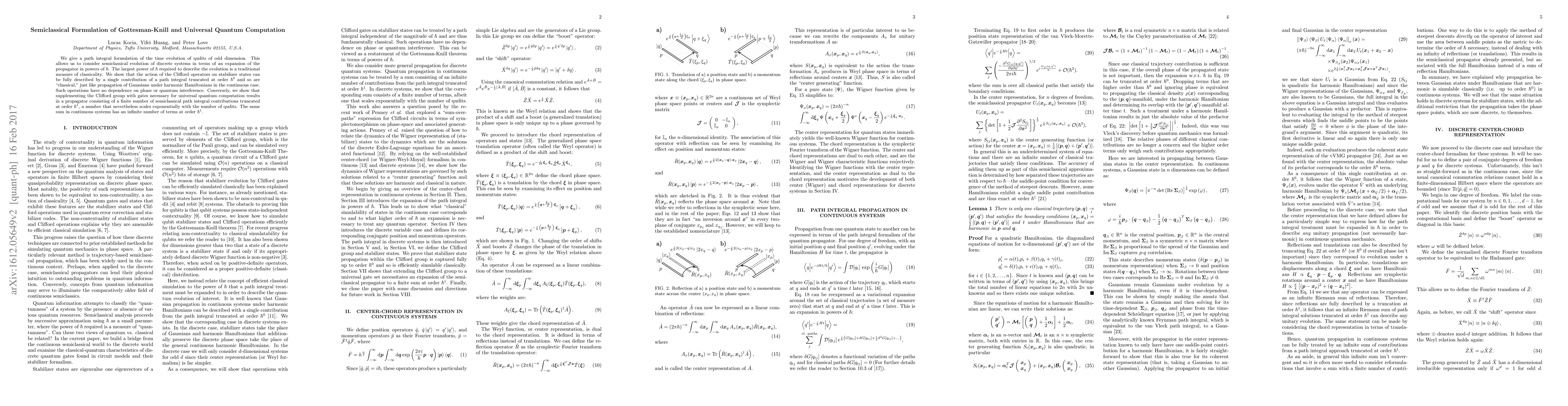 We give a path integral formulation of the time evolution of qudits of odd dimension. This allows us to consider semiclassical evolution of discrete systems in terms of an expansion of the propagator in powers of $\hbar$. The largest power of $\hbar$ required to describe the evolution is a traditional measure of classicality. We show that the action of the Clifford operators on stabilizer states can be fully described by a single contribution of a path integral truncated at order $\hbar^0$ and so are "classical," just like propagation of Gaussians under harmonic Hamiltonians in the continuous case. Such operations have no dependence on phase or quantum interference. Conversely, we show that supplementing the Clifford group with gates necessary for universal quantum computation results in a propagator consisting of a finite number of semiclassical path integral contributions truncated at order $\hbar^1$ , a number that nevertheless scales exponentially with the number of qudits. The same sum in continuous systems has an infinite number of terms at order $\hbar^1$.