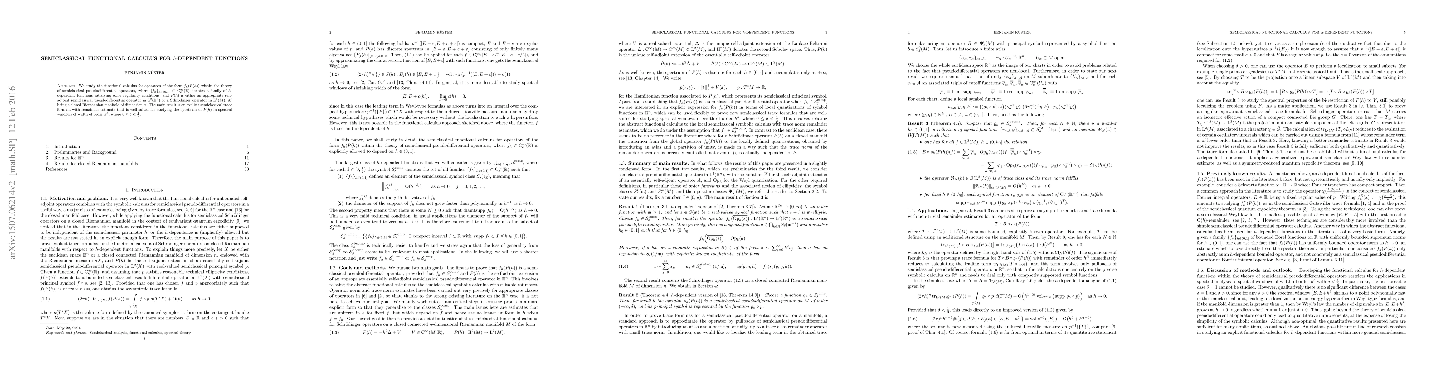 This paper develops a functional calculus for operators defined by h-dependent functions, enabling the study of the spectrum of certain pseudodifferential operators in spectral windows of width proportional to h^delta.