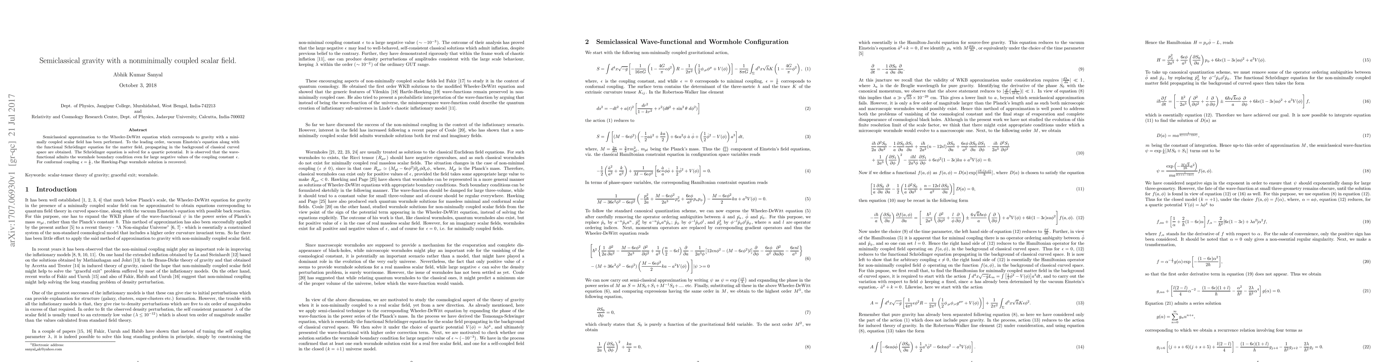 This paper explores semiclassical gravity with a nonminimally coupled scalar field, deriving vacuum Einstein's equation and the functional Schrödinger equation for a matter field in curved space. It finds that the wave-functional supports wormhole boundary conditions, with the Hawking-Page solution emerging for conformal coupling.
