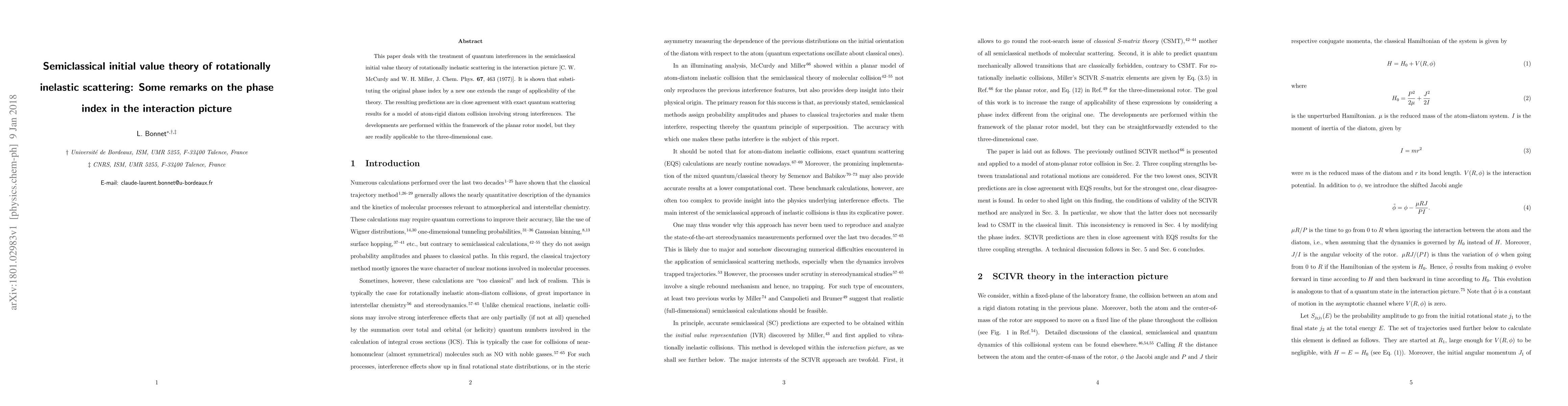 Researchers expanded the range of applicability of a theoretical model for rotationally inelastic scattering by introducing a new phase index, achieving agreements with exact quantum results and demonstrating its applicability to 3D cases.