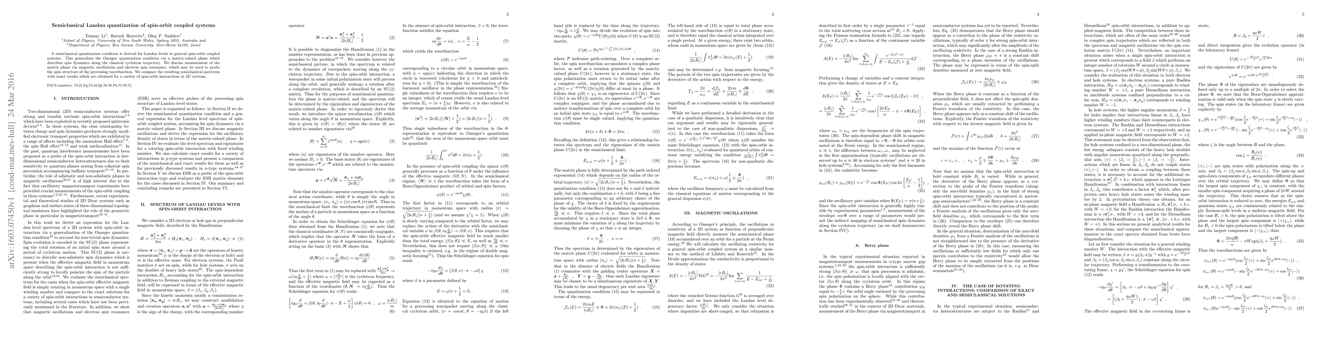 This paper derives a semiclassical quantization condition for Landau levels in spin-orbit coupled systems, generalizing the Onsager condition through a matrix-phase describing spin dynamics. It proposes measuring the matrix phase via magnetic oscillations and electron spin resonance to probe spin structures.