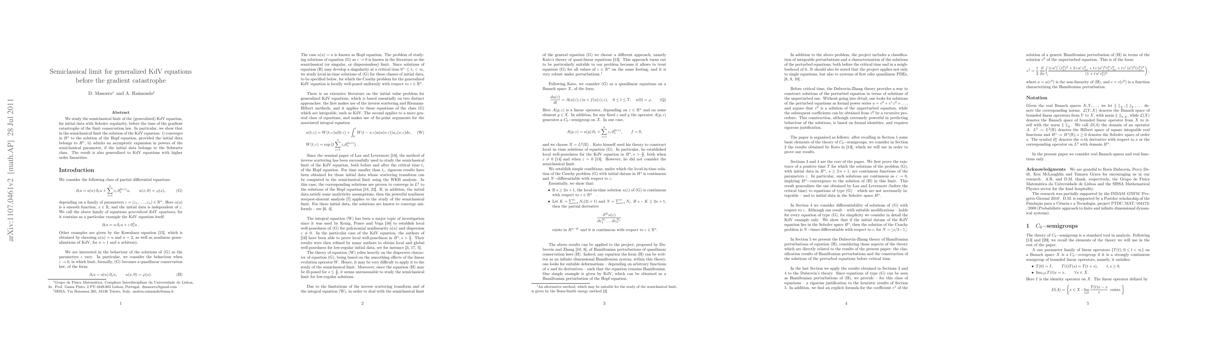 The paper studies the semiclassical limit of generalized KdV equations, showing that their solutions converge to known equations under certain initial data conditions and exhibit asymptotic expansions.