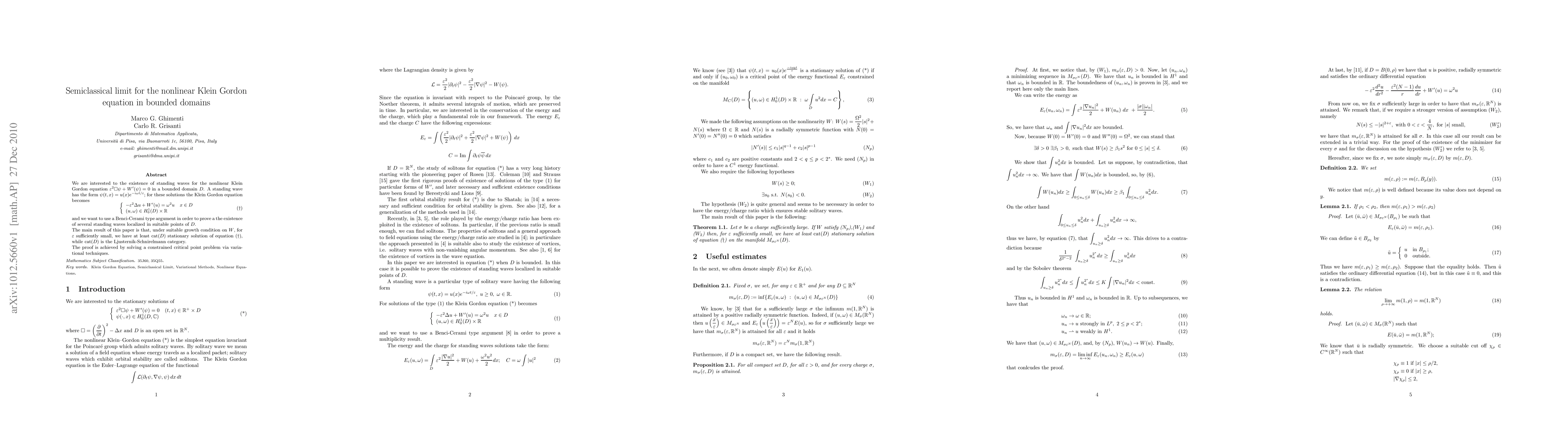 We are interested to the existence of standing waves for the nonlinear Klein Gordon equation {\epsilon}^2{\box}{\psi} + W'({\psi}) = 0 in a bounded domain D. The main result of this paper is that, under suitable growth condition on W, for {\epsilon} sufficiently small, we have at least cat(D) standing wavesfor the equation ({\dag}), while cat(D) is the Ljusternik-Schnirelmann category.