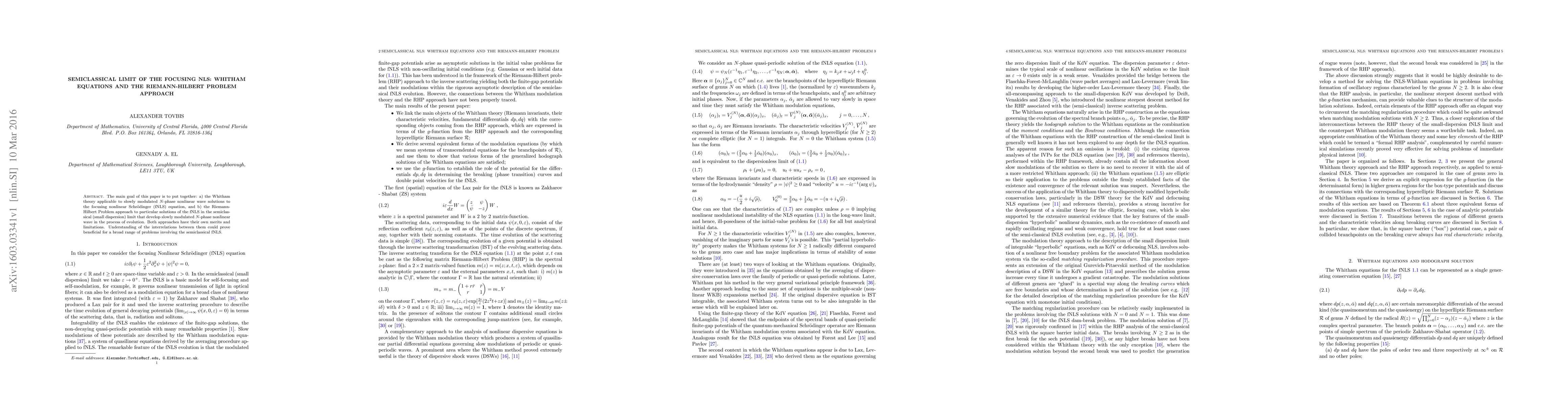 The main goal of this paper is to put together: a) the Whitham theory applicable to slowly modulated $N$-phase nonlinear wave solutions to the focusing nonlinear Schr\"odinger (fNLS) equation, and b) the Riemann-Hilbert Problem approach to particular solutions of the fNLS in the semiclassical (small dispersion) limit that develop slowly modulated $N$-phase nonlinear wave in the process of evolution. Both approaches have their own merits and limitations. Understanding of the interrelations between them could prove beneficial for a broad range of problems involving the semiclassical fNLS.