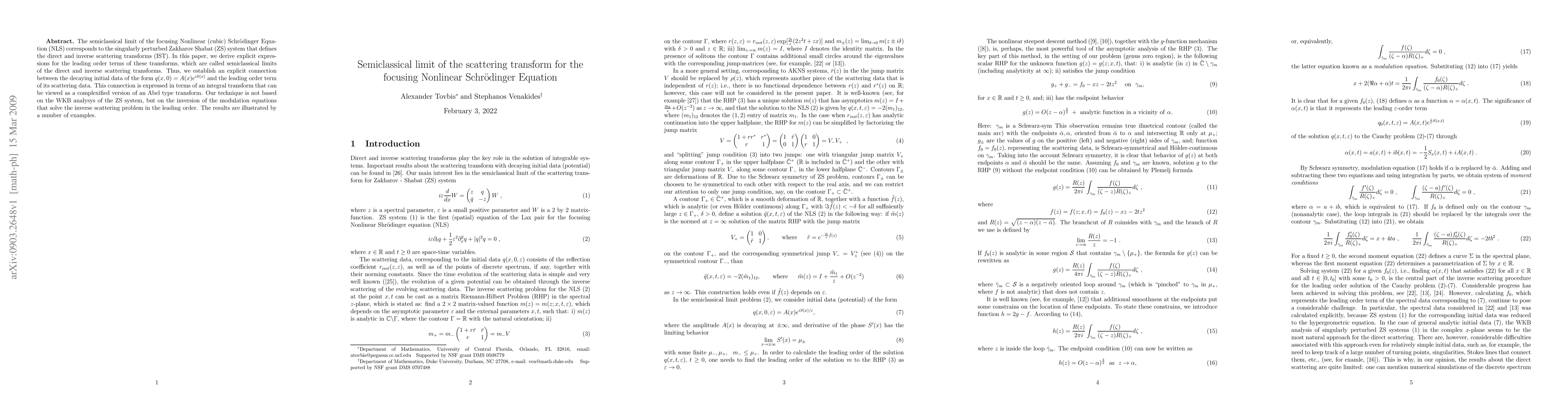 This paper derives explicit expressions for the semiclassical limits of the direct and inverse scattering transforms for the focusing Nonlinear Schrödinger Equation, establishing a connection between initial data and scattering data via an integral transform. The method avoids WKB analysis, relying instead on the inversion of modulation equations.