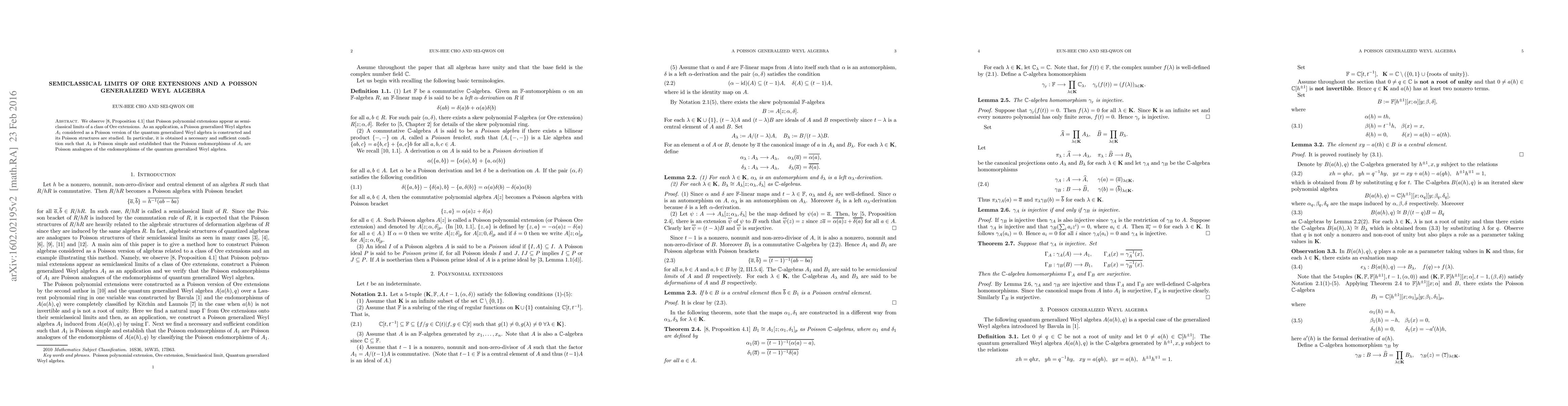 This paper examines the semiclassical limits of Ore extensions, revealing their connection to Poisson polynomial extensions. It constructs a Poisson generalized Weyl algebra $A_1$ and analyzes its Poisson structure, providing conditions for its Poisson simplicity and relating its endomorphisms to those of the quantum generalized Weyl algebra.