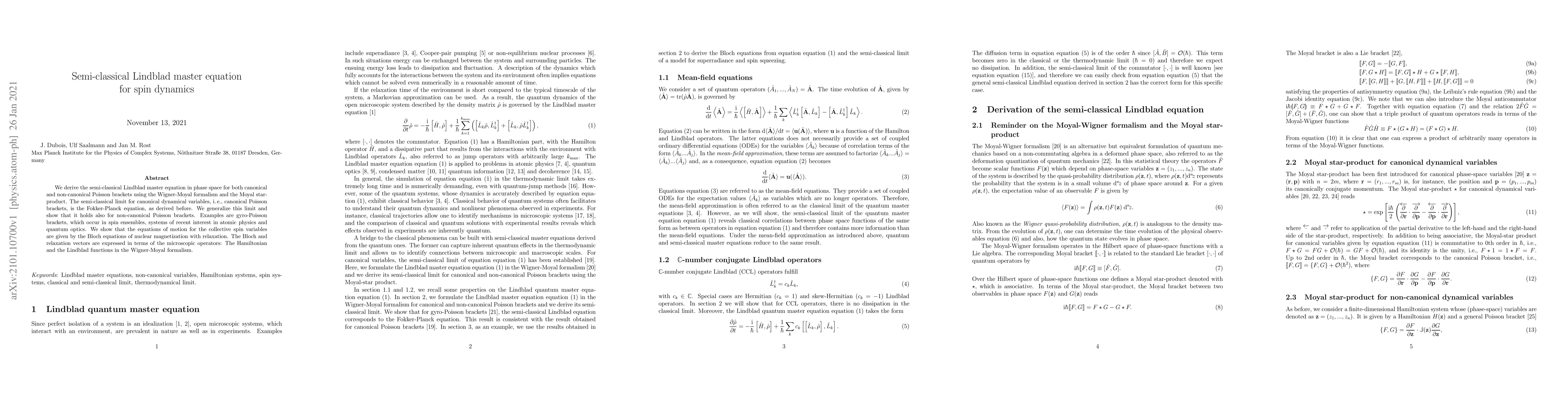 We derive the semi-classical Lindblad master equation in phase space for both canonical and non-canonical Poisson brackets using the Wigner-Moyal formalism and the Moyal star-product. The semi-classical limit for canonical dynamical variables, i.e., canonical Poisson brackets, is the Fokker-Planck equation, as derived before. We generalize this limit and show that it holds also for non-canonical Poisson brackets. Examples are gyro-Poisson brackets, which occur in spin ensembles, systems of recent interest in atomic physics and quantum optics. We show that the equations of motion for the collective spin variables are given by the Bloch equations of nuclear magnetization with relaxation. The Bloch and relaxation vectors are expressed in terms of the microscopic operators: The Hamiltonian and the Lindblad functions in the Wigner-Moyal formalism.
