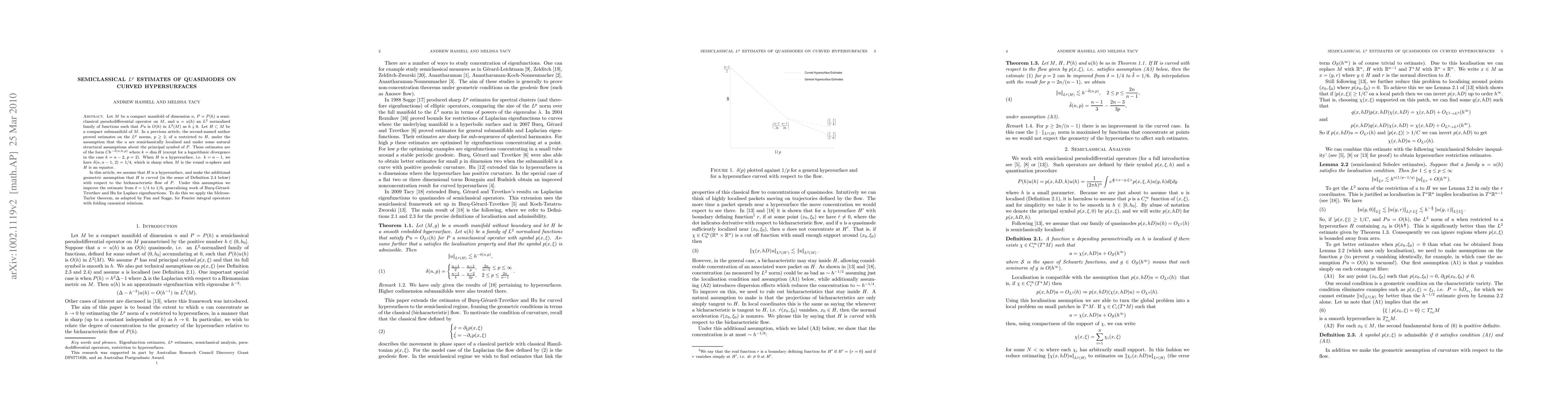 This paper refines semiclassical L^p estimates for quasimodes on curved hypersurfaces by improving the exponent from 1/4 to 1/6, leveraging the Melrose-Taylor theorem adapted for Fourier integral operators with folding canonical relations. The improvement generalizes results previously obtained for Laplace eigenfunctions.