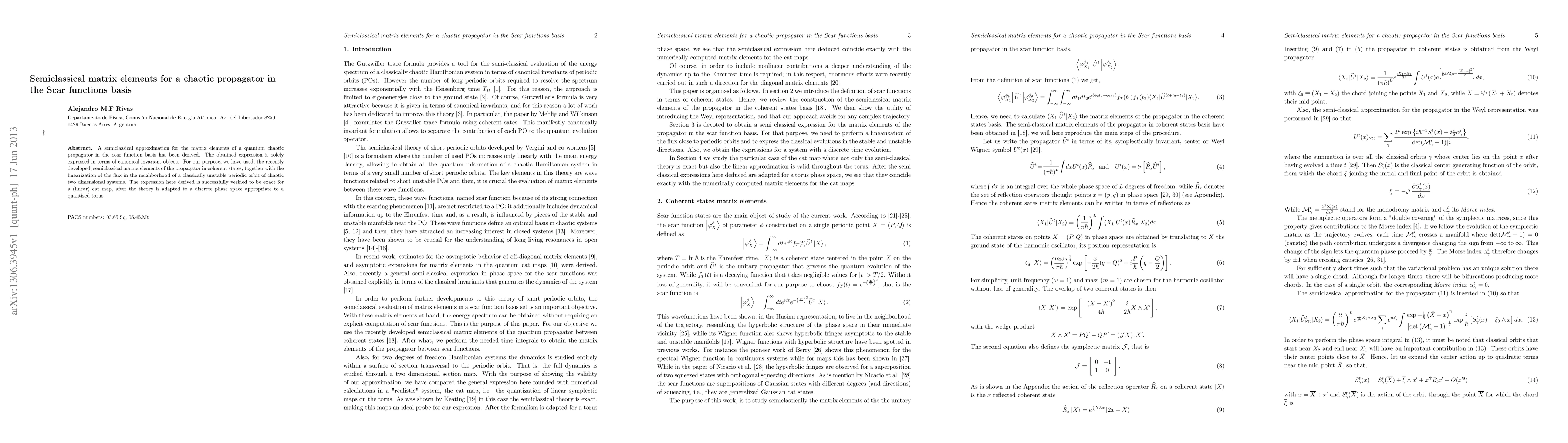 This paper derives a semiclassical approximation for quantum chaotic propagator matrix elements in the scar function basis, expressed in terms of canonical invariant objects. The approach uses semiclassical matrix elements in coherent states and linearization of flux near unstable periodic orbits, verified to be exact for a linear cat map in a quantized torus.