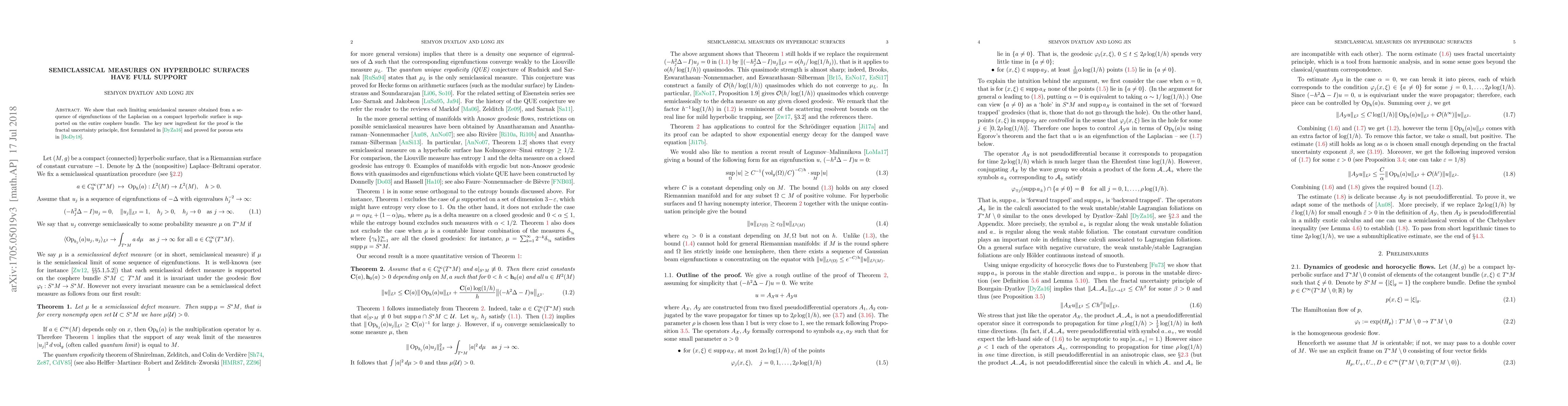 Summary: This paper demonstrates that limiting semiclassical measures derived from Laplacian eigenfunctions on compact hyperbolic surfaces support the entire cosphere bundle, utilizing the fractal uncertainty principle as a novel proof element.