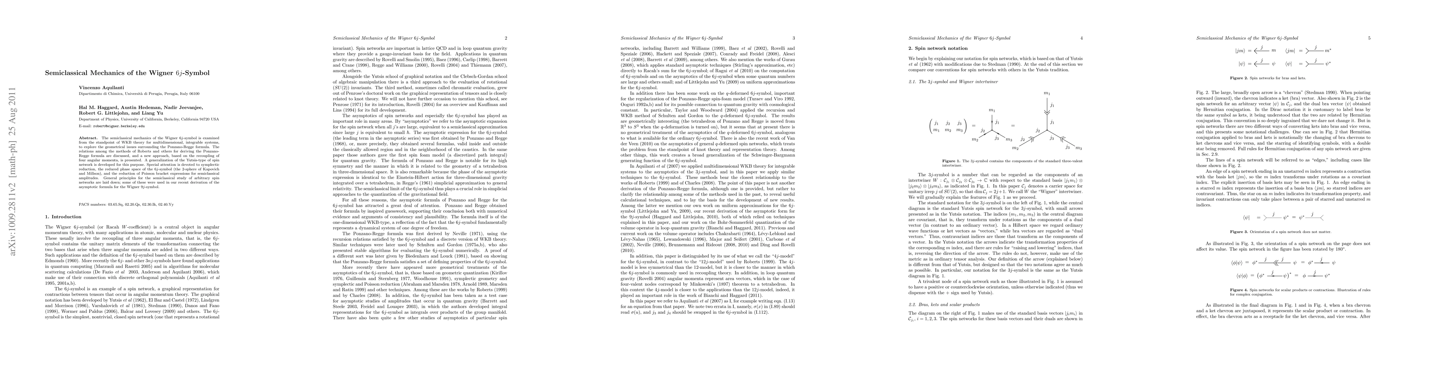 The semiclassical mechanics of the Wigner 6j-symbol is examined from the standpoint of WKB theory for multidimensional, integrable systems, to explore the geometrical issues surrounding the Ponzano-Regge formula. The relations among the methods of Roberts and others for deriving the Ponzano-Regge formula are discussed, and a new approach, based on the recoupling of four angular momenta, is presented. A generalization of the Yutsis-type of spin network is developed for this purpose. Special attention is devoted to symplectic reduction, the reduced phase space of the 6j-symbol (the 2-sphere of Kapovich and Millson), and the reduction of Poisson bracket expressions for semiclassical amplitudes. General principles for the semiclassical study of arbitrary spin networks are laid down; some of these were used in our recent derivation of the asymptotic formula for the Wigner 9j-symbol.