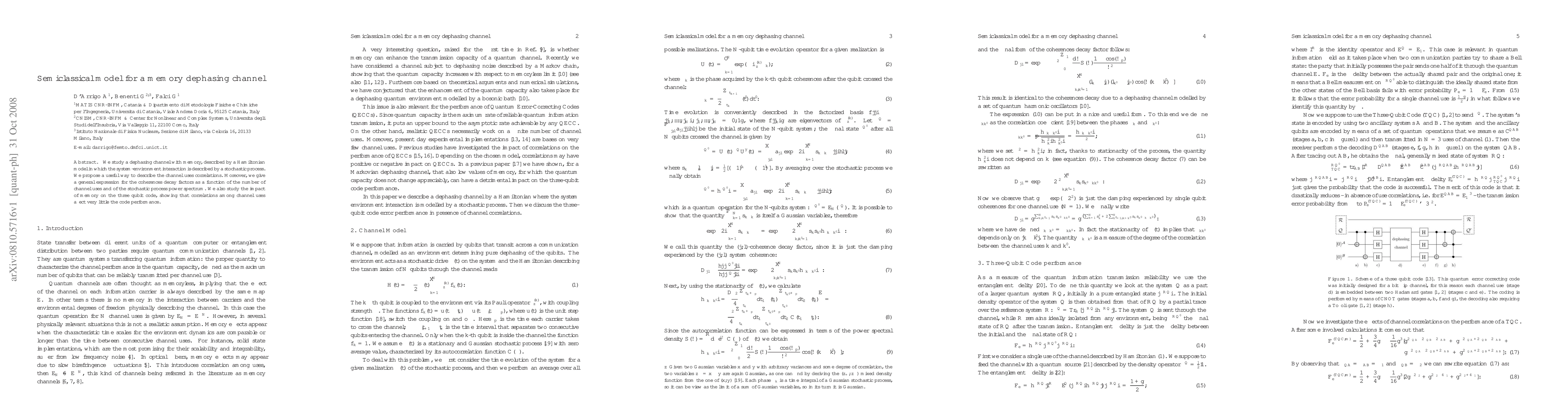 This paper proposes a semiclassical model for a memory dephasing channel with a stochastic system-environment interaction, providing a general expression for coherence decay factors. It finds that memory effects have minimal impact on the performance of a three-qubit code.
