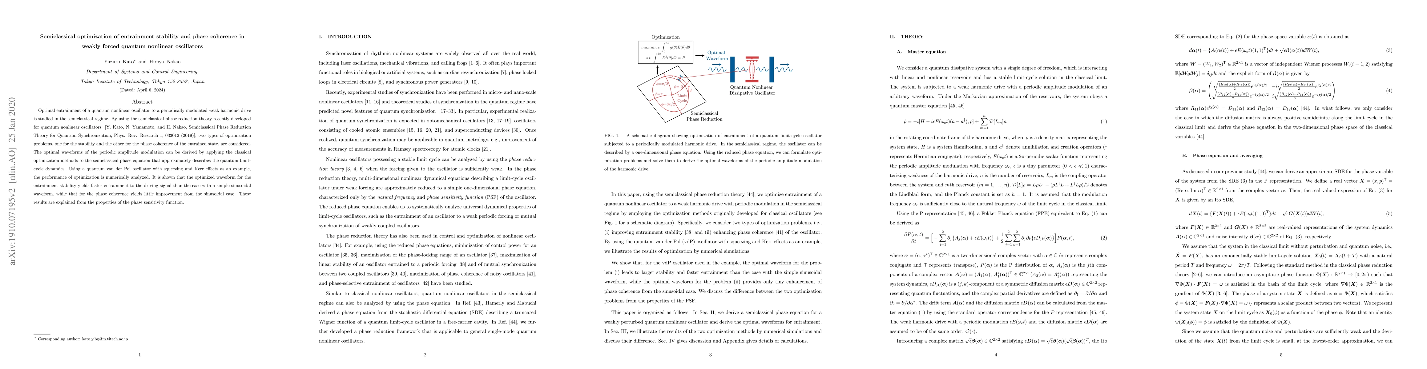 This paper investigates optimal entrainment of a quantum nonlinear oscillator under weak periodic modulation using semiclassical phase reduction theory. The study finds that optimized waveforms improve entrainment stability but offer little improvement for phase coherence compared to simple sinusoidal waveforms.
