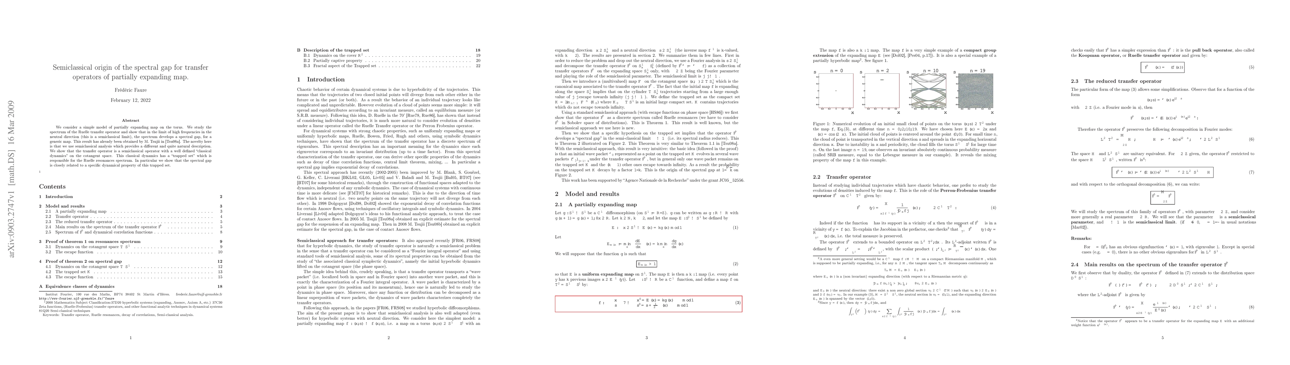 This paper investigates the spectral properties of the Ruelle transfer operator for a partially expanding map on the torus. It demonstrates that in the semiclassical limit, the spectrum develops a spectral gap, revealing a novel semiclassical analysis approach that connects the operator's dynamics to a trapped set on the cotangent space.