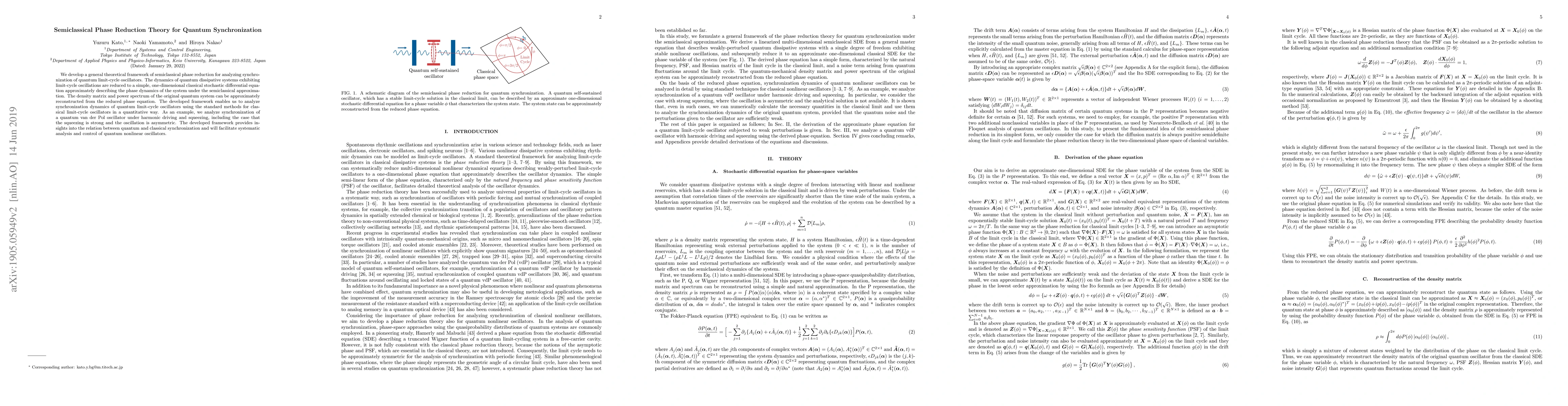 This paper proposes a semiclassical phase reduction theory to analyze quantum synchronization of limit-cycle oscillators, reducing their dynamics to a classical stochastic differential equation. The framework allows for the reconstruction of quantum system properties and facilitates the study of quantum synchronization using classical methods.