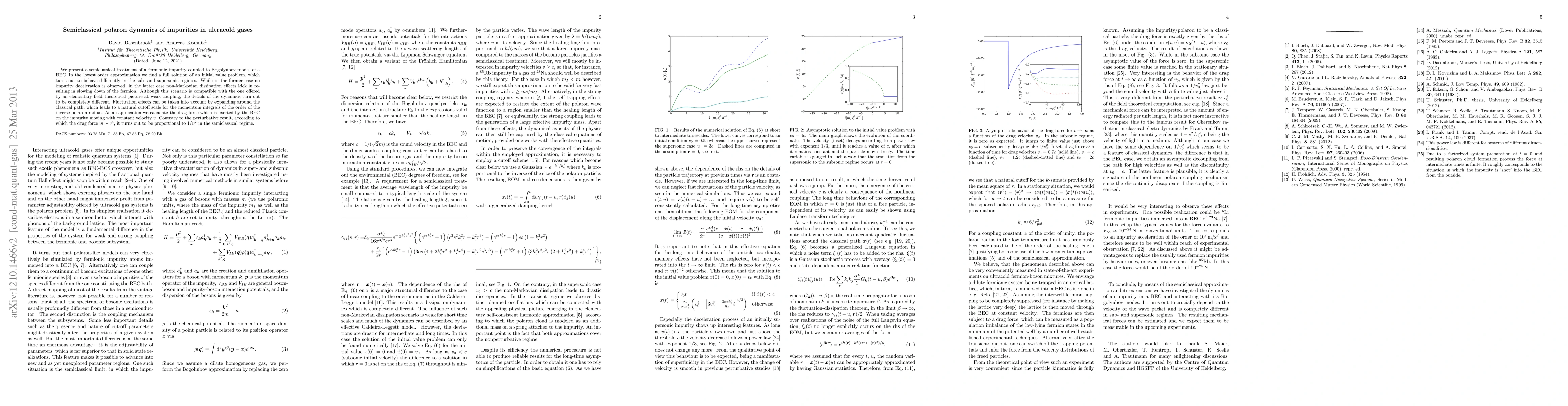 We present a semiclassical treatment of a fermionic impurity coupled to Bogolyubov modes of a BEC. In the lowest order approximation we find a full solution of an initial value problem, which turns out to behave differently in the sub- and supersonic regimes. While in the former case no impurity deceleration is observed, in the latter case non-Markovian dissipation effects kick in resulting in slowing down of the fermion. Although this scenario is compatible with the one offered by an elementary field theoretical picture at weak coupling, the details of the dynamics turn out to be completely different. Fluctuation effects can be taken into account by expansion around the classical path. This allows for estimation of the all-important polaron radius as a function of fermion-boson coupling strength. As an application we calculate the drag force which is exerted by the BEC on the impurity moving with constant velocity $v$. Contrary to the perturbative result, according to which the drag force is $\sim v^4$, it turns out to be proportional to $1/v^2$ in the semiclassical regime.
