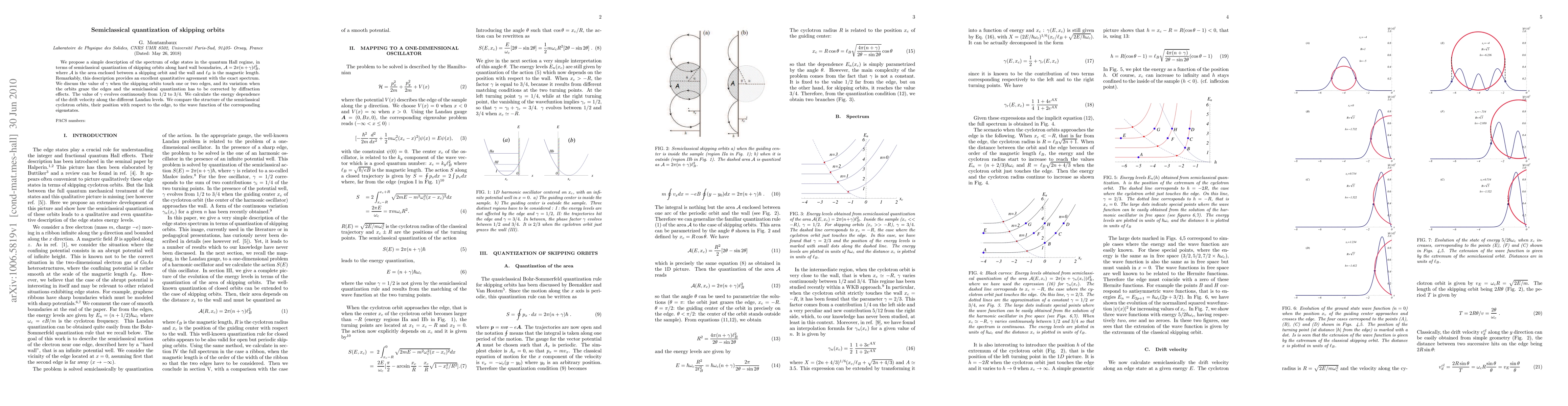 This paper proposes a semiclassical quantization method for edge states in the quantum Hall regime, describing the spectrum in terms of skipping orbits along hard wall boundaries. The method shows excellent quantitative agreement with the exact spectrum, particularly in the evolution of the parameter $\gamma$ as orbits interact with the edges.