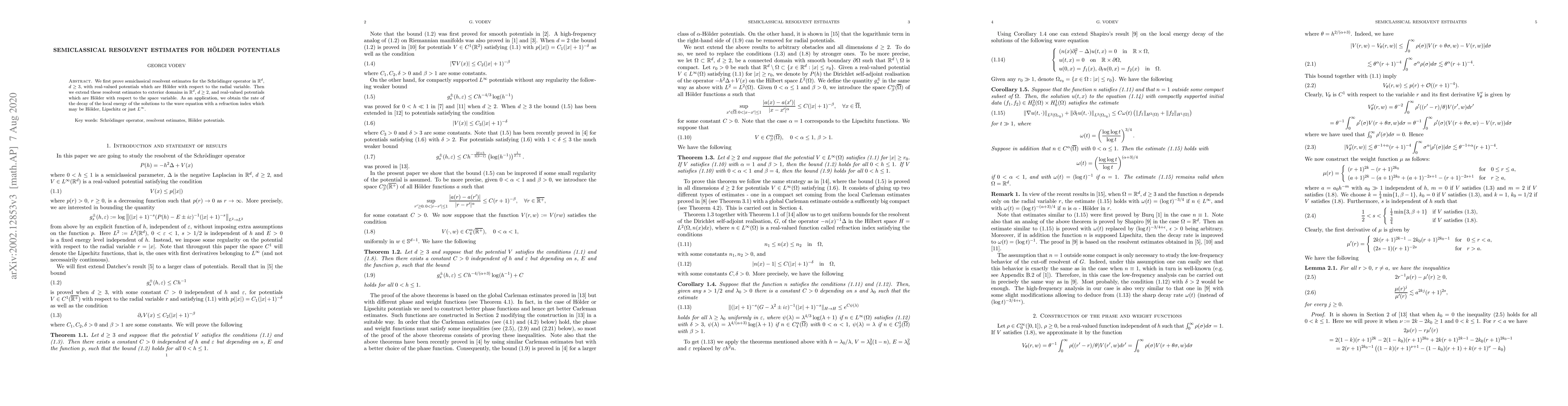 We first prove semiclassical resolvent estimates for the Schr{\"o}dinger operator in R d , d $\ge$ 3, with real-valued potentials which are H{\"o}lder with respect to the radial variable. Then we extend these resolvent estimates to exterior domains in R d , d $\ge$ 2, and real-valued potentials which are H{\"o}lder with respect to the space variable. As an application, we obtain the rate of the decay of the local energy of the solutions to the wave equation with a refraction index which may be H{\"o}lder, Lipschitz or just L $\infty$ .