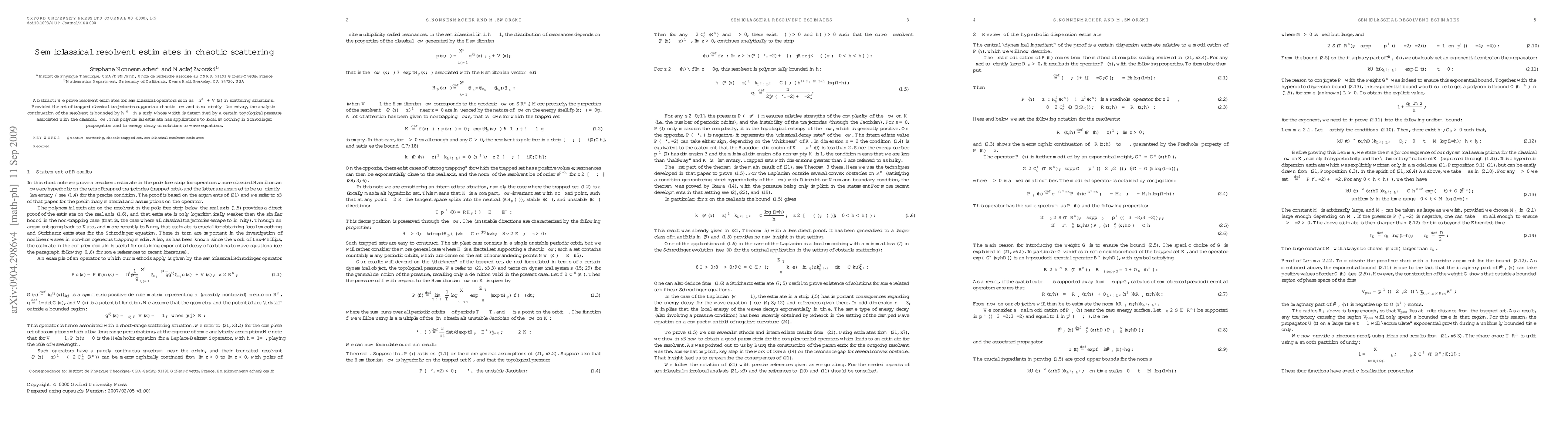 We prove resolvent estimates for semiclassical operators such as $-h^2 \Delta+V(x)$ in scattering situations. Provided the set of trapped classical trajectories supports a chaotic flow and is sufficiently filamentary, the analytic continuation of the resolvent is bounded by $h^{-M}$ in a strip whose width is determined by a certain topological pressure associated with the classical flow. This polynomial estimate has applications to local smoothing in Schr\"odinger propagation and to energy decay of solutions to wave equations.