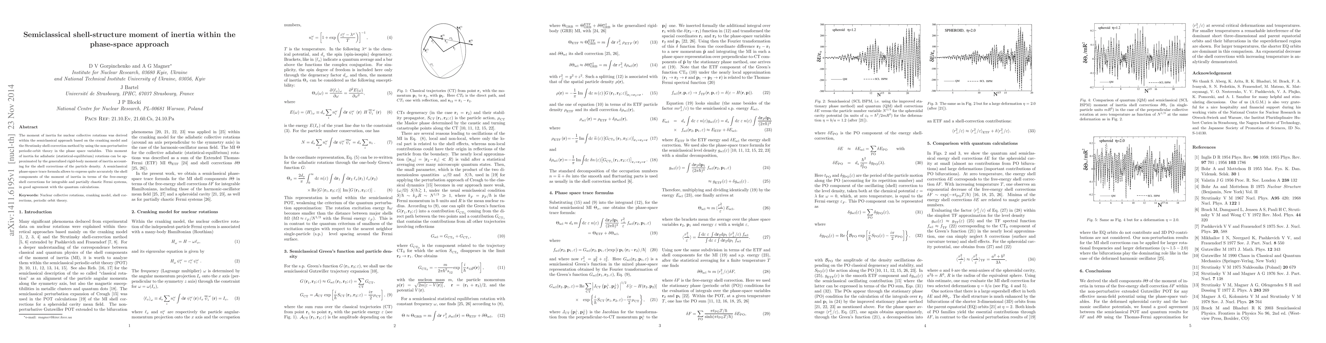 This paper derives the moment of inertia for nuclear rotations using a semiclassical approach that combines the cranking model, Strutinsky shell-correction method, and periodic-orbit theory in phase space. The derived moment of inertia aligns well with quantum calculations and accounts for shell corrections in particle density.