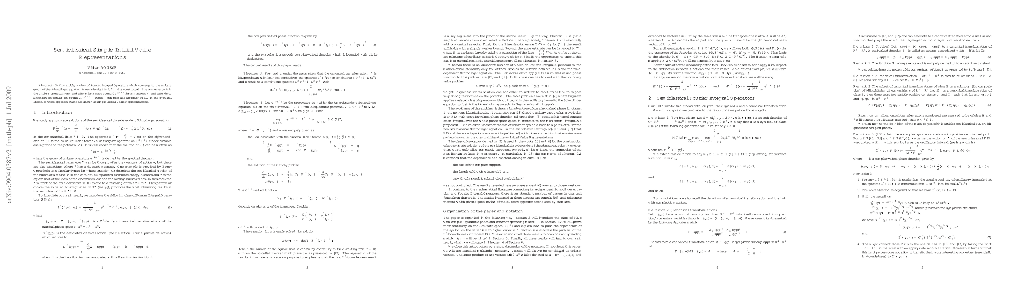 In this article, a class of Fourier Integral Operators which converge to the unitary group of the Schr\"odinger equation in semiclassical limit $\epsilon\to 0$ is constructed. The convergence is in the uniform operator norm and allows for a error bound $C_N\epsilon^{N+1}$ for any integer $N$ and extends to Ehrenfest timescaleswith bound $C_N\epsilon^{N+1-\rho}$ where $\rho$ can be made arbitrary small. In the chemical literature those approximations are known as simple Initial Value Representations.