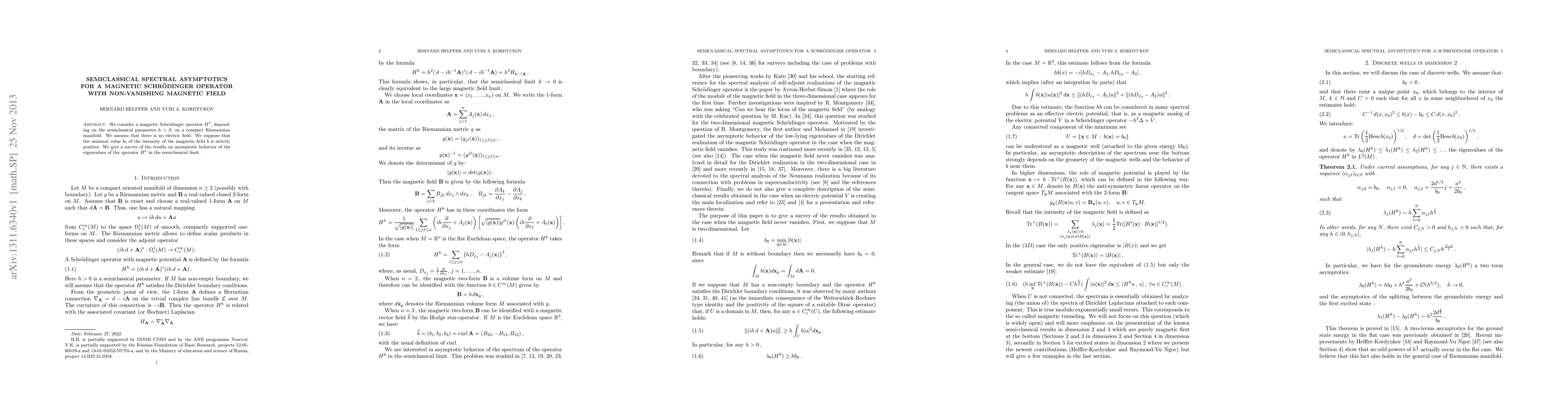 This paper surveys the asymptotic behavior of eigenvalues for a magnetic Schrödinger operator with a non-vanishing magnetic field on a compact Riemannian manifold, focusing on the semiclassical limit as the parameter $h$ approaches zero. The study highlights the spectral properties influenced by the magnetic field intensity.
