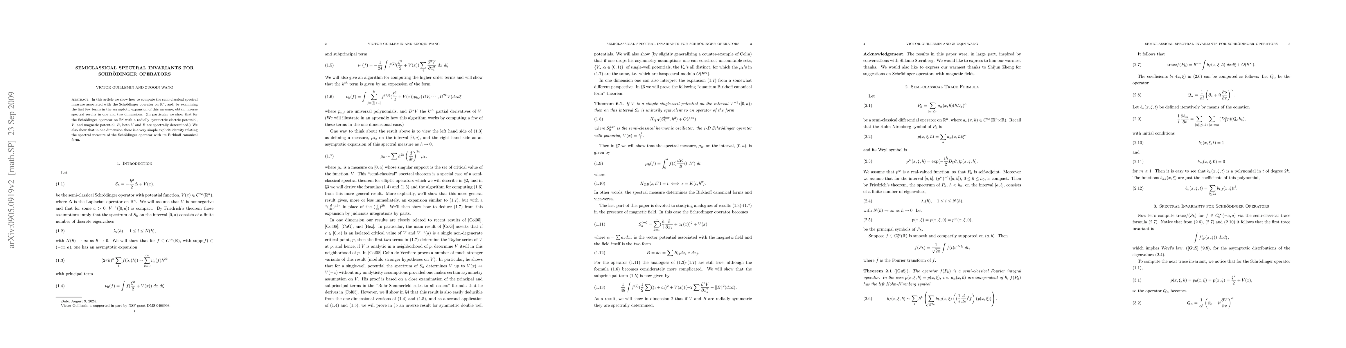 This paper investigates semiclassical spectral measures for Schrödinger operators in $R^n$, computing initial coefficients of their asymptotic expansions and providing an alternative proof for recovering potential wells from spectral data. It also explores the connection to Birkhoff normal forms and extends the analysis to Schrödinger operators with magnetic fields.