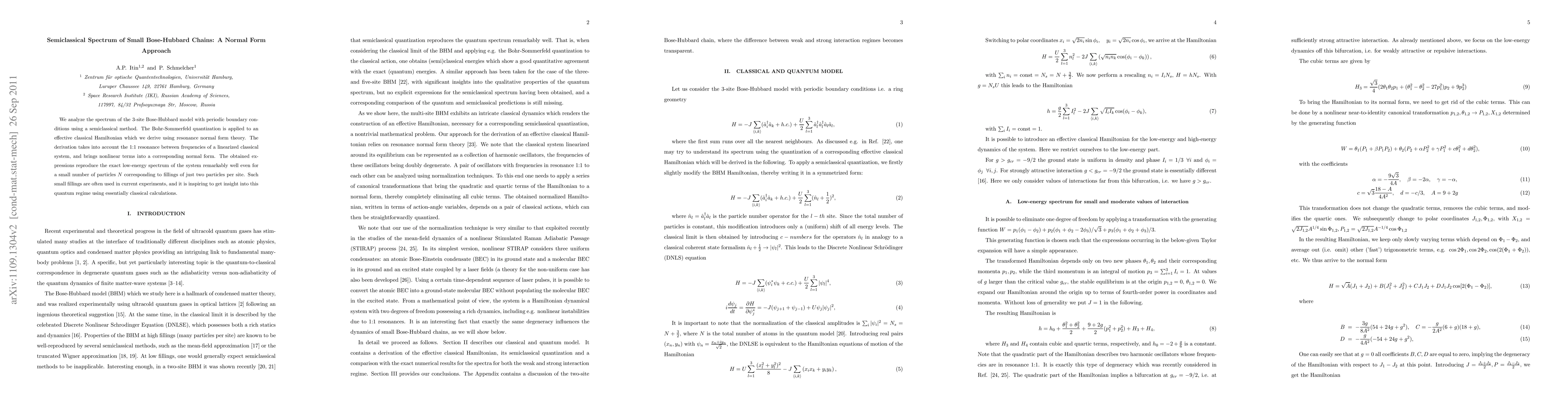This paper employs semiclassical methods to analyze the spectrum of a 3-site Bose-Hubbard model, deriving an effective classical Hamiltonian via resonance normal form theory. The Bohr-Sommerfeld quantization of this Hamiltonian accurately reproduces the exact low-energy spectrum, providing insight into quantum behavior in small Bose-Hubbard systems.