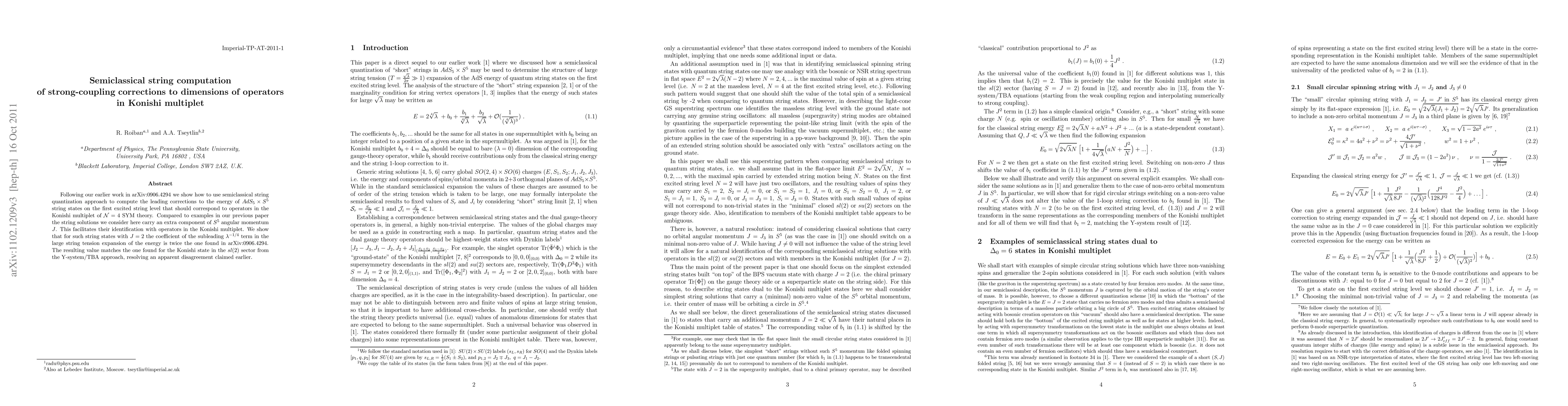 This paper employs semiclassical string quantization to compute leading corrections to the energy of AdS_5 x S^5 string states corresponding to operators in the Konishi multiplet of N=4 SYM theory, showing that the coefficient of the subleading term matches previous results from the Y-system/TBA approach, resolving earlier discrepancies.