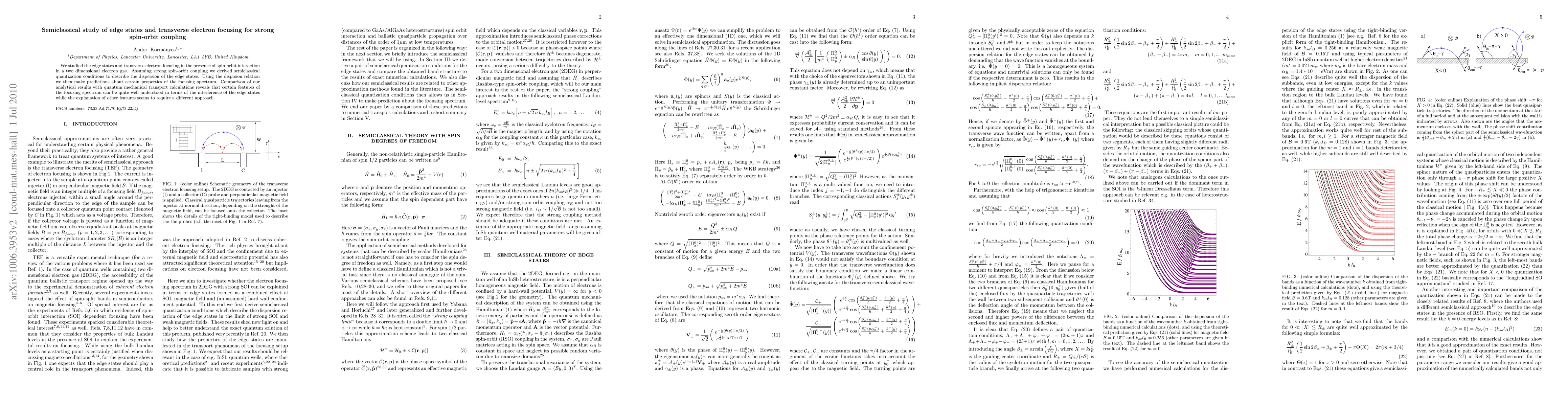 This paper investigates edge states and transverse electron focusing in a two-dimensional electron gas with strong spin-orbit coupling, deriving semiclassical quantization conditions for edge state dispersion. Analytical results are compared with quantum mechanical transport calculations, showing that interference of edge states explains some focusing spectrum features, while others require a different approach.