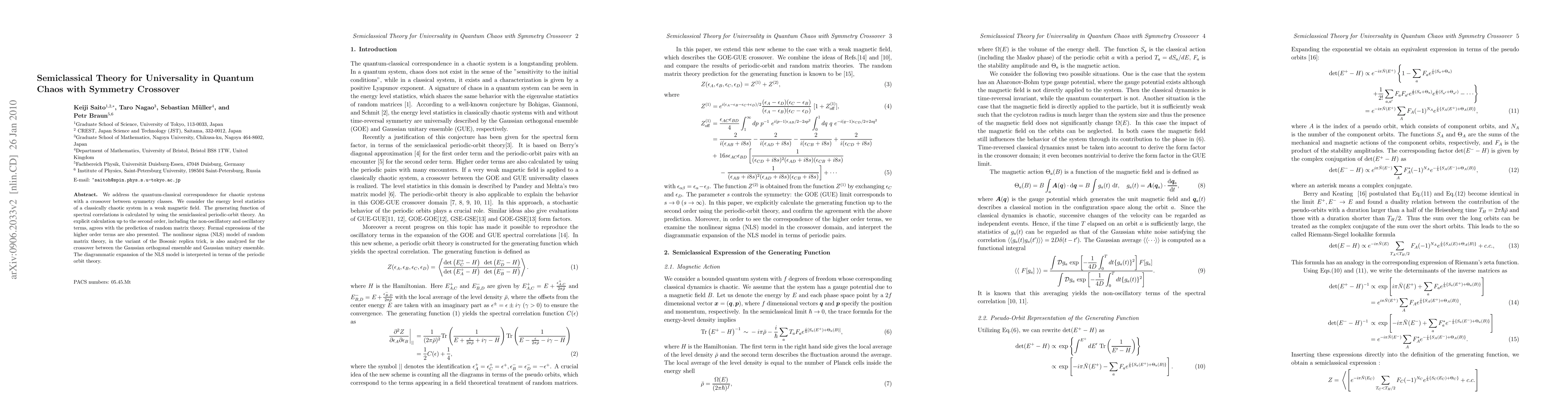 We address the quantum-classical correspondence for chaotic systems with a crossover between symmetry classes. We consider the energy level statistics of a classically chaotic system in a weak magnetic field. The generating function of spectral correlations is calculated by using the semiclassical periodic-orbit theory. An explicit calculation up to the second order, including the non-oscillatory and oscillatory terms, agrees with the prediction of random matrix theory. Formal expressions of the higher order terms are also presented. The nonlinear sigma (NLS) model of random matrix theory, in the variant of the Bosonic replica trick, is also analyzed for the crossover between the Gaussian orthogonal ensemble and Gaussian unitary ensemble. The diagrammatic expansion of the NLS model is interpreted in terms of the periodic orbit theory.