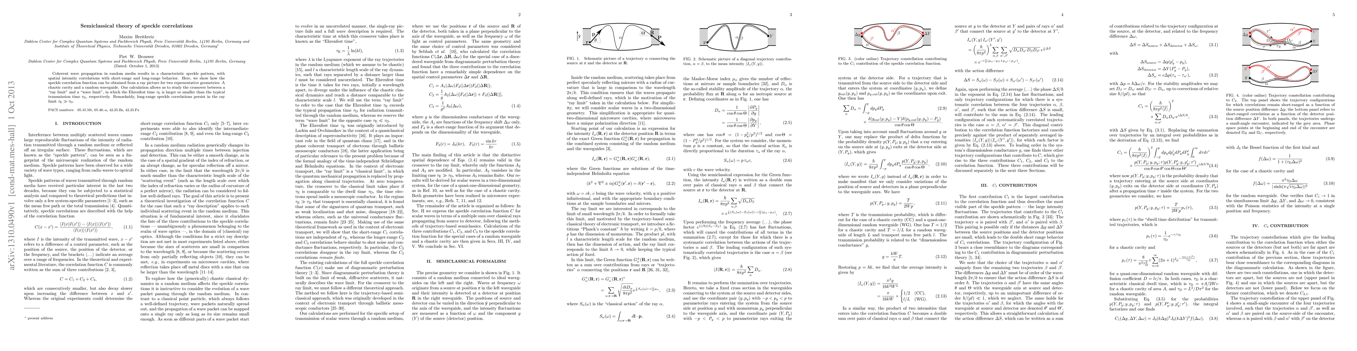 Coherent wave propagation in random media results in a characteristic speckle pattern, with spatial intensity correlations with short-range and long-range behavior. Here, we show how the speckle correlation function can be obtained from a ray picture for two representative geometries: A chaotic cavity and a random waveguide. Our calculation allows us to study the crossover between a "ray limit" and a "wave limit", in which the Ehrenfest time $\tau_E$ is larger or smaller than the typical transmission time $\tau_D$, respectively. Remarkably, long-range speckle correlations persist in the ray limit $\tau_E \gg \tau_D$.