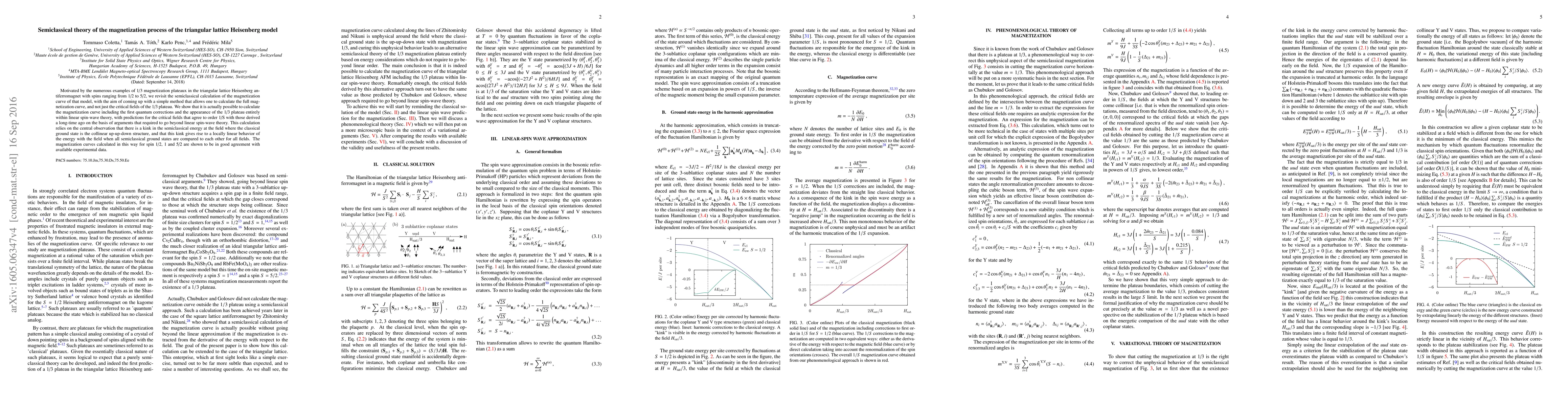 Motivated by the numerous examples of 1/3 magnetization plateaux in the triangular lattice Heisenberg an- tiferromagnet with spins ranging from 1/2 to 5/2, we revisit the semiclassical calculation of the magnetization curve of that model, with the aim of coming up with a simple method that allows one to calculate the full mag- netization curve, and not just the critical fields of the 1/3 plateau. We show that it is actually possible to calculate the magnetization curve including the first quantum corrections and the appearance of the 1/3 plateau entirely within linear spin-wave theory, with predictions for the critical fields that agree to order 1/S with those derived a long-time ago on the basis of arguments that required to go beyond linear spin-wave theory. This calculation relies on the central observation that there is a kink in the semiclassical energy at the field where the classical ground state is the collinear up-up-down structure, and that this kink gives rise to a locally linear behavior of the energy with the field when all semiclassical ground states are compared to each other for all fields. The magnetization curves calculated in this way for spin 1/2, 1 and 5/2 are shown to be in good agreement with available experimental data.