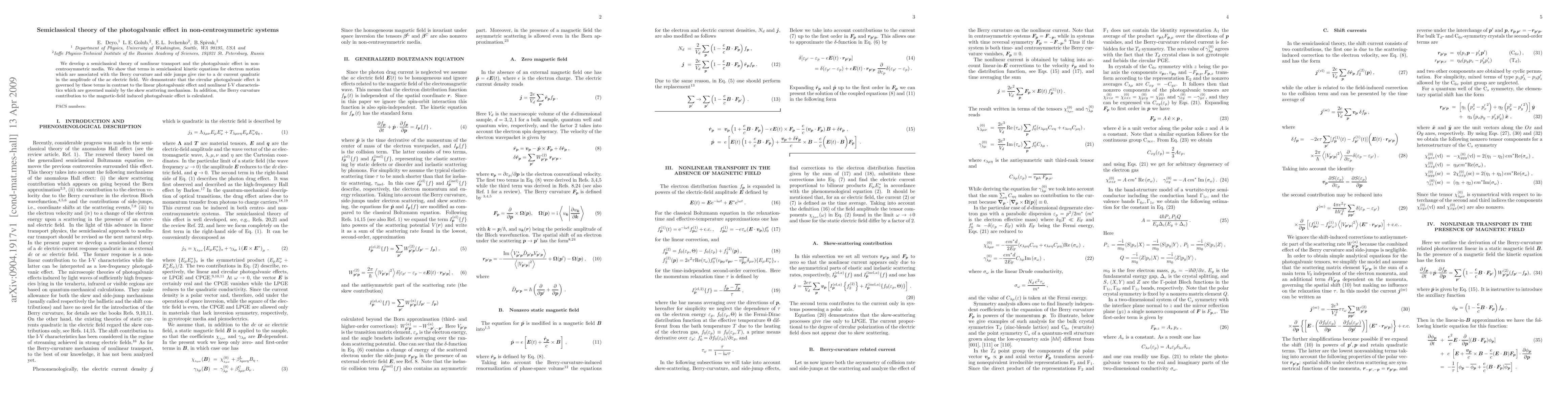 This paper develops a semiclassical theory explaining nonlinear transport and the photogalvanic effect in non-centrosymmetric media. It highlights that the Berry curvature and side jumps contribute to a dc current quadratic in the ac electric field, distinguishing the circular photogalvanic effect from linear effects and nonlinear I-V characteristics, which are mainly governed by skew scattering.