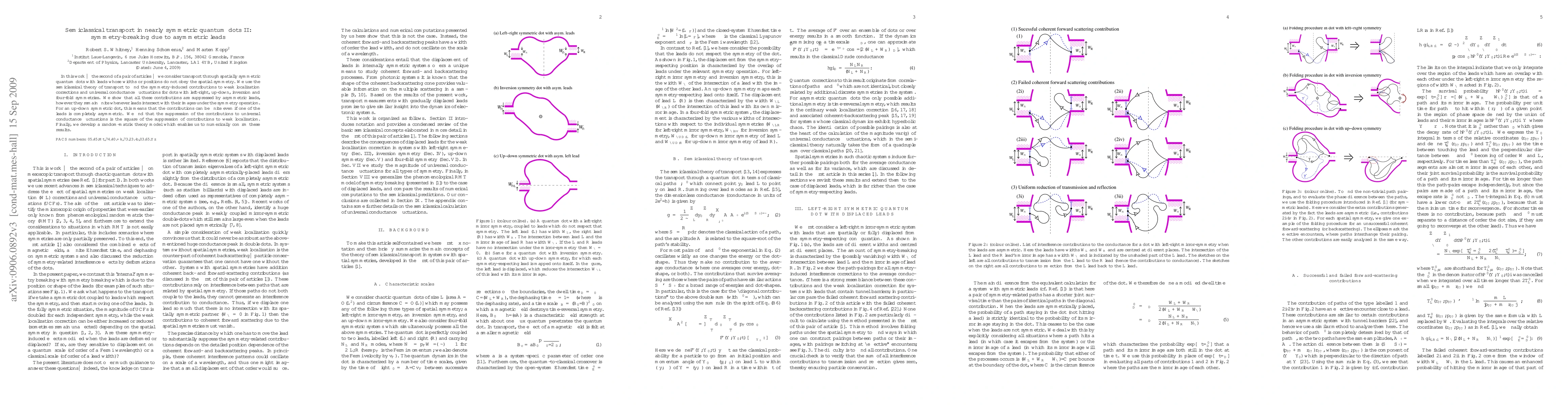 This paper investigates transport in nearly symmetric quantum dots with asymmetric leads, using semiclassical theory to analyze symmetry-induced effects on weak localization and conductance fluctuations. It finds that asymmetry in leads suppresses these effects, but they remain finite if leads intersect with their symmetric counterparts.