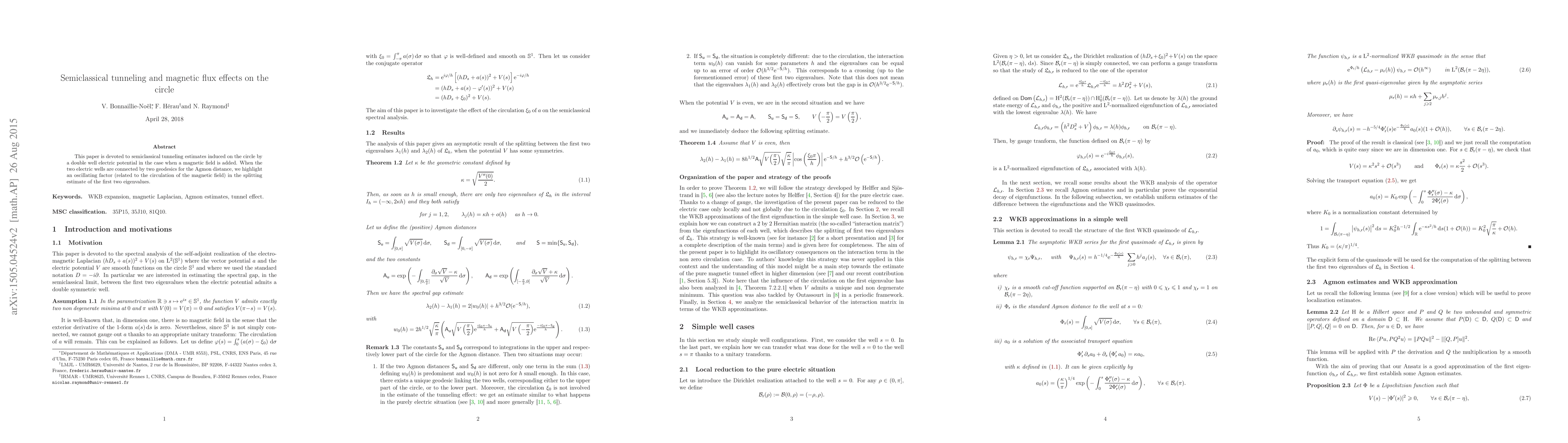 This paper investigates semiclassical tunneling in a double well potential on the circle, focusing on the impact of a magnetic field. It reveals an oscillating factor in the eigenvalue splitting due to magnetic flux circulation, affecting the tunneling estimates.