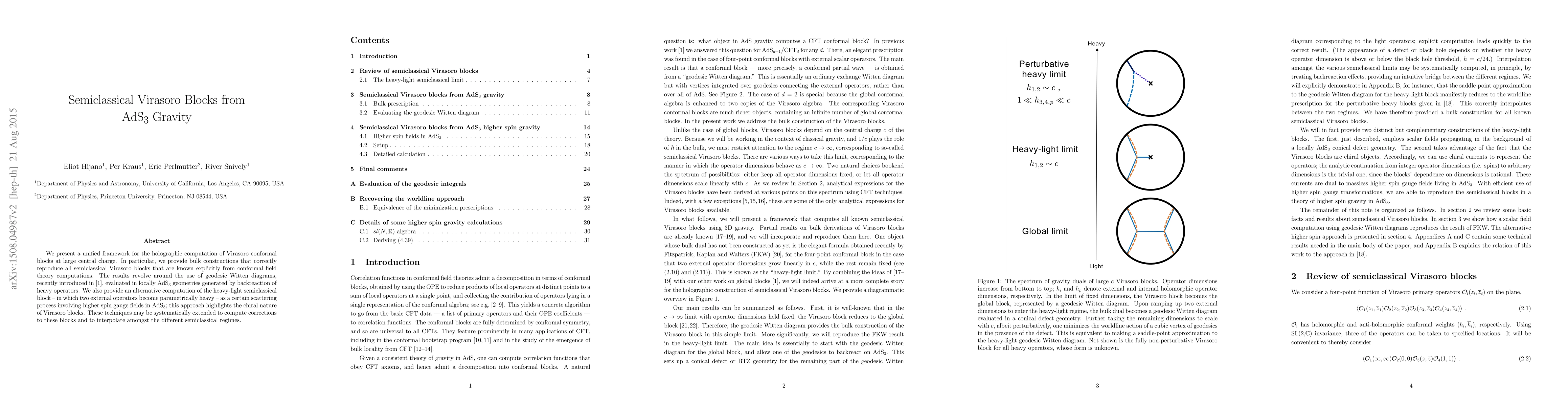 We present a unified framework for the holographic computation of Virasoro conformal blocks at large central charge. In particular, we provide bulk constructions that correctly reproduce all semiclassical Virasoro blocks that are known explicitly from conformal field theory computations. The results revolve around the use of geodesic Witten diagrams, recently introduced in arXiv:1508.00501, evaluated in locally AdS$_3$ geometries generated by backreaction of heavy operators. We also provide an alternative computation of the heavy-light semiclassical block -- in which two external operators become parametrically heavy -- as a certain scattering process involving higher spin gauge fields in AdS$_3$; this approach highlights the chiral nature of Virasoro blocks. These techniques may be systematically extended to compute corrections to these blocks and to interpolate amongst the different semiclassical regimes.