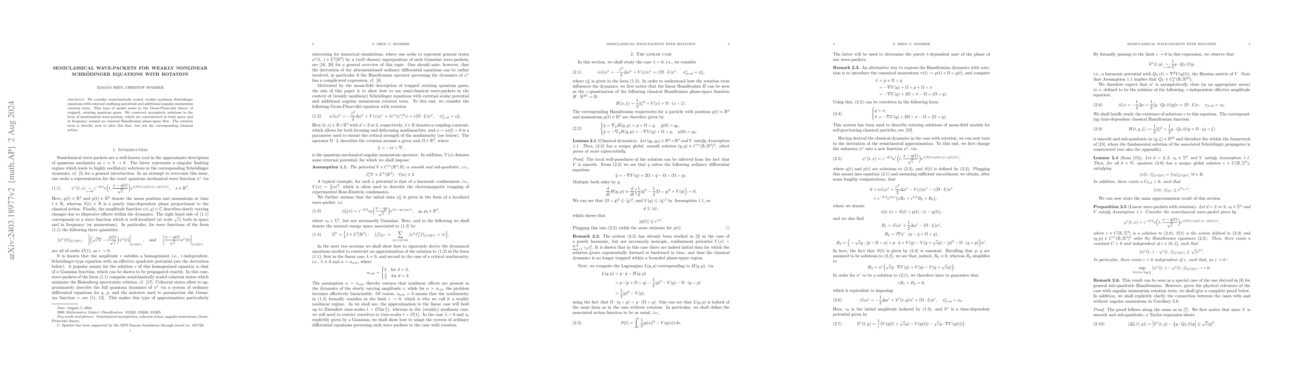 Summary: This paper constructs asymptotic solutions, in the form of semiclassical wave-packets, for weakly nonlinear Schrödinger equations with rotation and external potentials, relevant to rotating quantum gases. The rotation alters the classical phase-space flow but not the classical action.