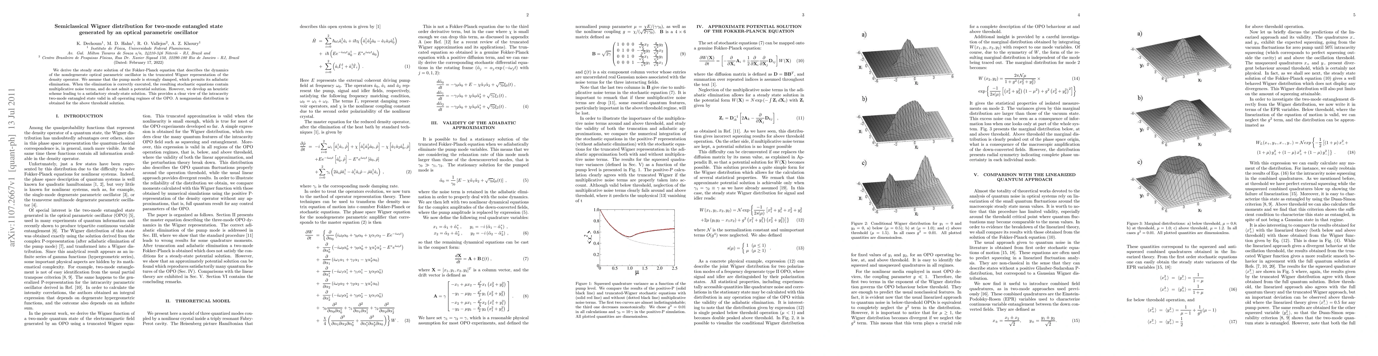 Researchers developed a steady-state solution for a two-mode entangled state in an optical parametric oscillator, leading to a non-Gaussian distribution that provides insight into the system's dynamics.