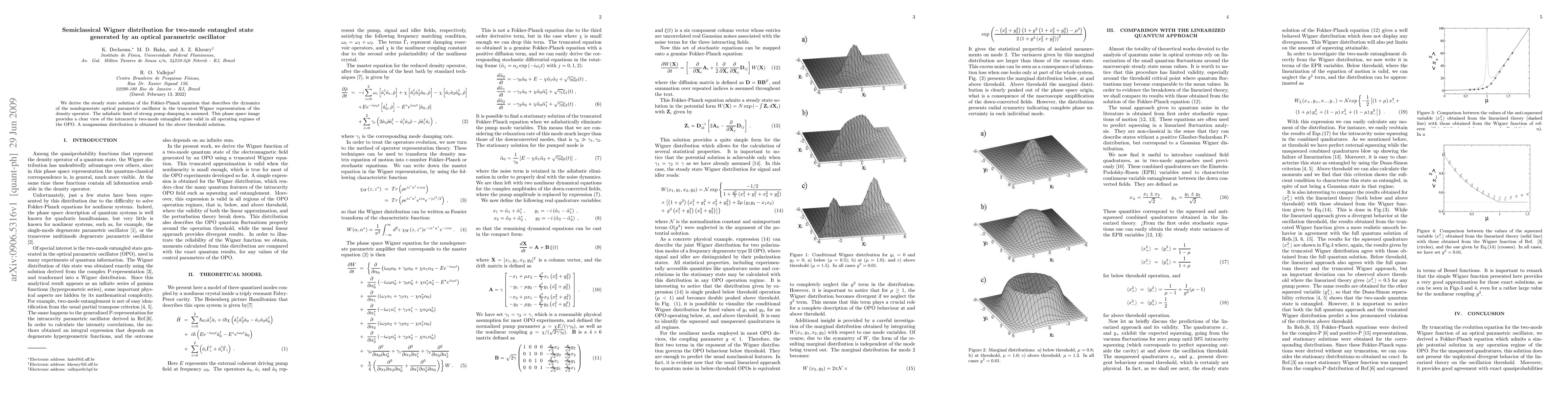 Researchers derived a steady-state solution for a two-mode entangled state generated by an optical parametric oscillator, revealing a nongaussian distribution in the intracavity regime.