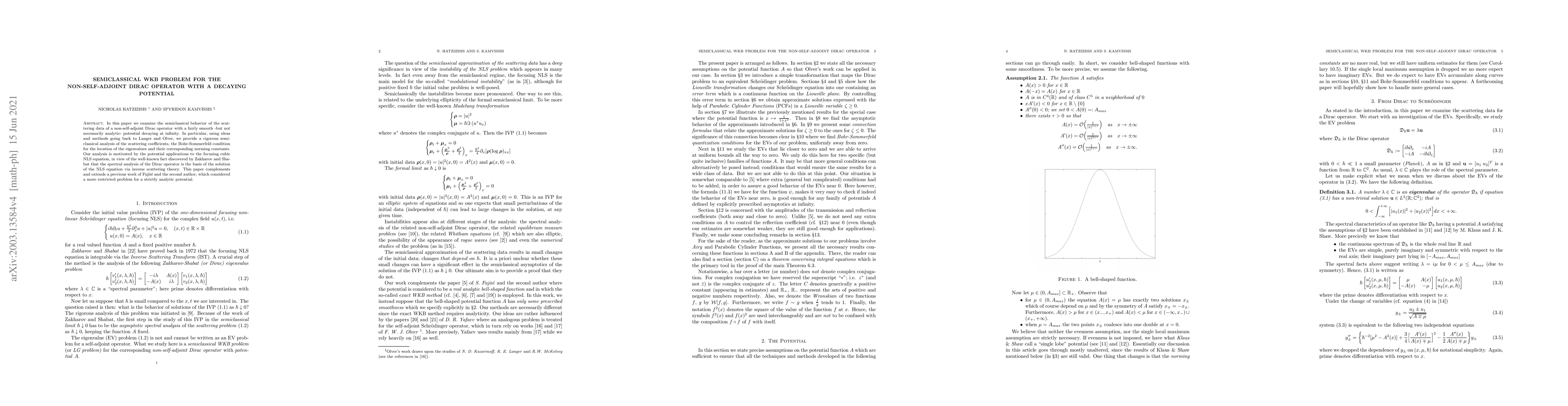 In this paper we examine the semiclassical behaviour of the scattering data of a non-self-adjoint Dirac operator with a fairly smooth but not necessarily analytic potential decaying at infinity. In particular, using ideas and methods going back to Langer and Olver, we provide the complete rigorous uniform semiclassical analysis of the scattering coefficients away (slightly) from zero, and the rigorous proof of the uniform Bohr-Sommerfeld condition for the location of the eigenvalues. Our analysis is motivated by the potential applications to the focusing cubic NLS equation, in view of the well-known fact discovered by Zakharov and Shabat that the spectral analysis of the Dirac operator is the basis of the solution of the NLS equation via inverse scattering theory. This paper complements and extends a previous work of Fujii\'e and the second author, which considered a more restricted problem for a strictly analytic potential.